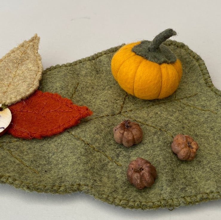 The Hunter works hard in the forest like all of his elf friends, they gather food for a feast and make shelter for the cold months ahead. The forest floor is cold now, Hunter has found a large green leaf to sit upon and has gathered pumpkins to share with his elf friends. Autumn is always a busy time for the elves as they plan the colder weeks to come.
