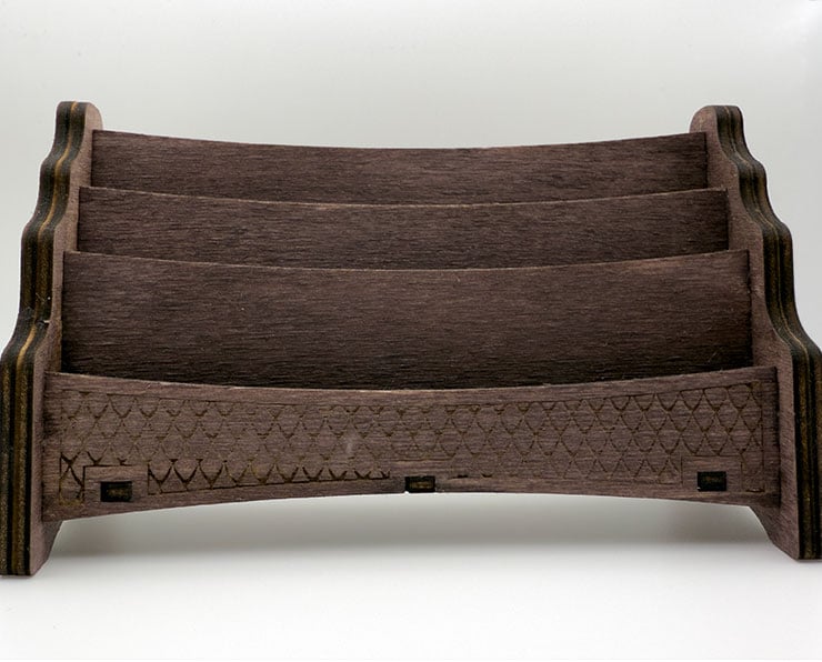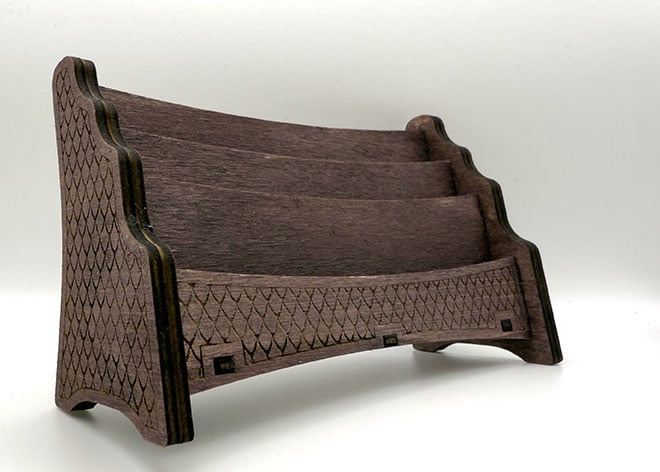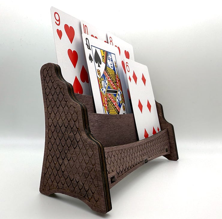 Organise your card games in style with this beautifully handcrafted wooden playing card holder. Perfectly designed to hold three rows of playing cards, this elegant piece combines functionality with rustic charm.