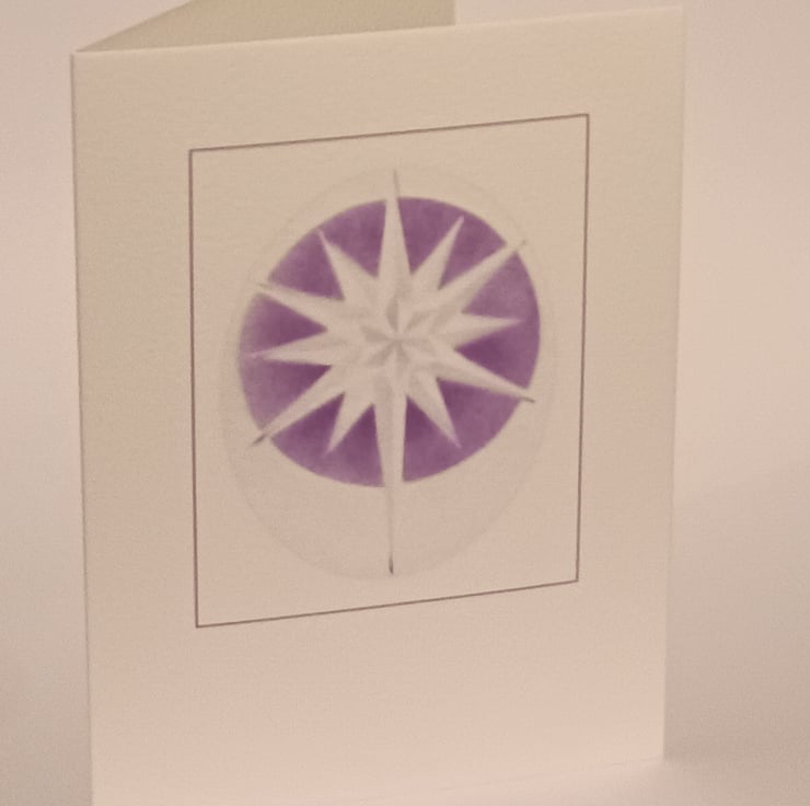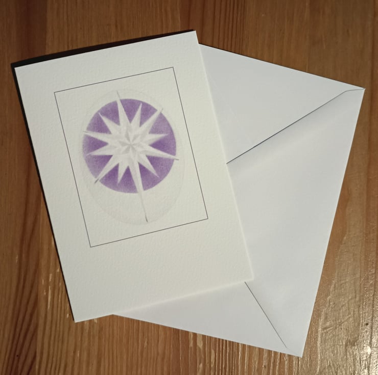 I made the original design for this handmade Crystal Star 2 card from hand cut stencils based on one of my original pencil drawings. I then airbrushed my design onto fine art card. The inks are no longer available so I made a scan of the card. There is a Crystal Star 1 design as well, not available at the moment.