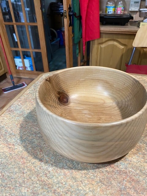 9" monkey puzzle wood fruit bowl. Beautiful figuring and a lovely deep shape.