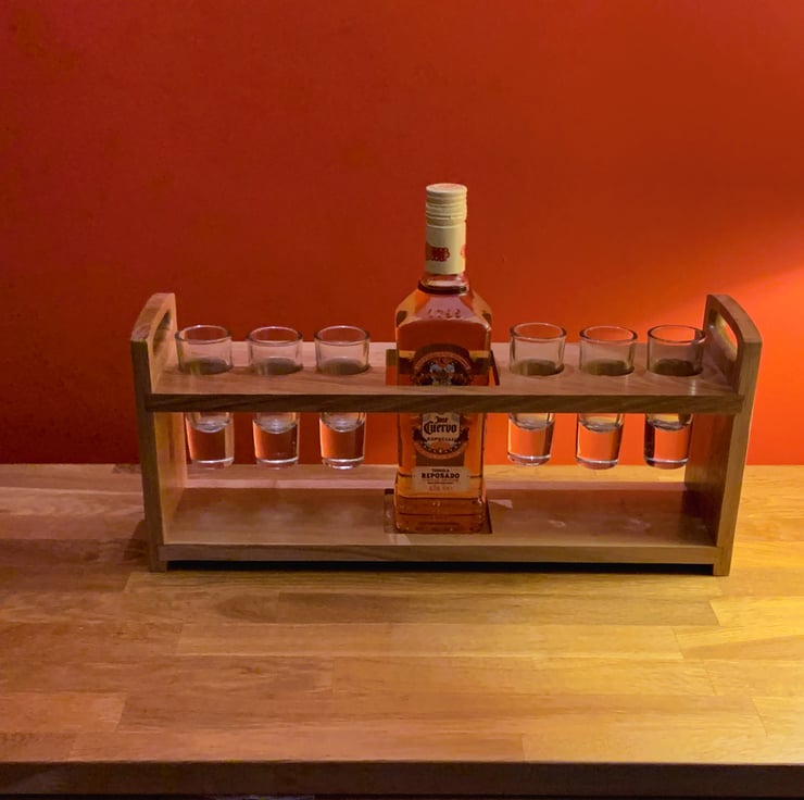 I had been searching for a tequila shot rack without success so I decided to make my own!