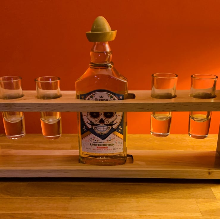 My handcrafted tequila serving racks are perfect for showcasing your favourite bottle. The glasses and rack can be customised, allowing you to add your name, logo, or a special message—making it the ideal addition to any bar, party, or celebration.