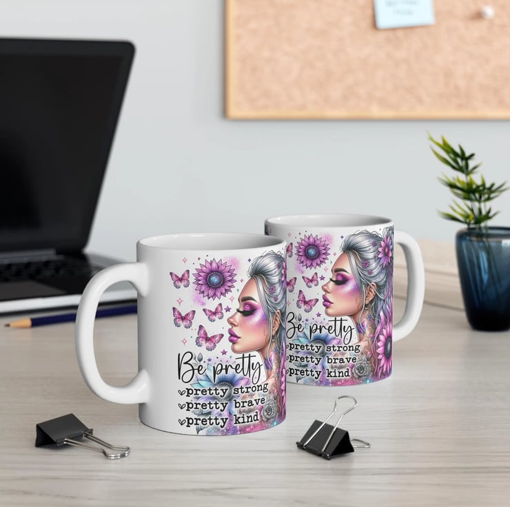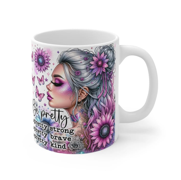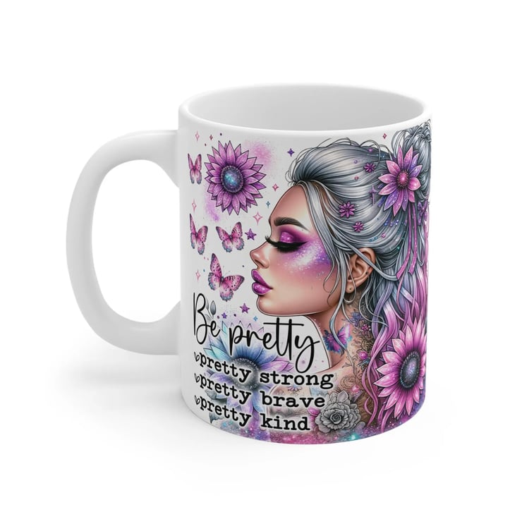 Introducing a beautiful 11oz White Mug that radiates positivity and style. This mug features vibrant colors and enchanting designs that inspire joy with every sip. Perfect for your morning coffee, evening tea, or cozy hot chocolate, it adds a touch of charm to your daily routine. Ideal for anyone who loves art and wants to celebrate their uniqueness, this mug makes a thoughtful gift for friends, family, or even yourself. Its design is perfect for various occasions such as birthdays, holidays, or just as a special treat for someone you care about. Enjoy your beverages with an uplifting vibe!