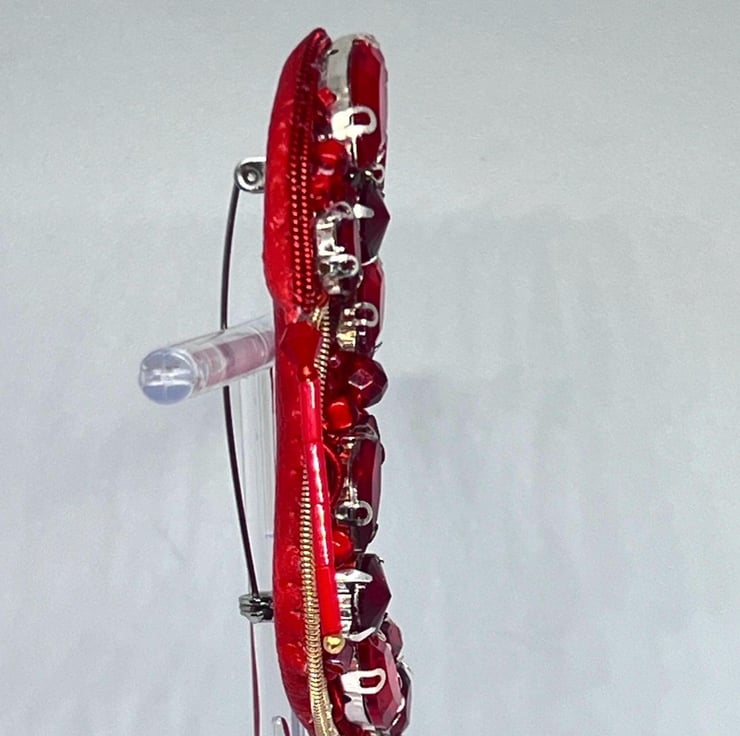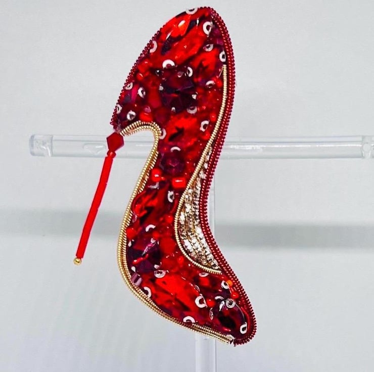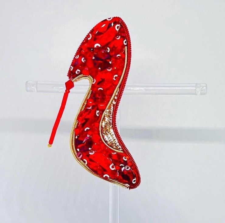 This handmade red high heel brooch is a stunning statement accessory featuring intricate beadwork and sparkling rhinestones. Perfect for fashion lovers, bridal accessories, or as a gift for shoe enthusiasts. Add glamour to your outfit with this unique, eye-catching brooch. Crafted with high-quality materials, this brooch ensures both elegance and durability, making it a timeless addition to your jewelry collection.
