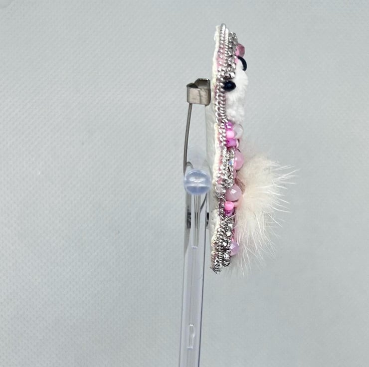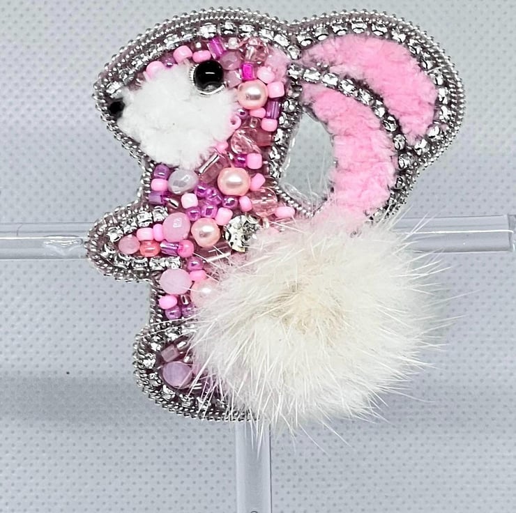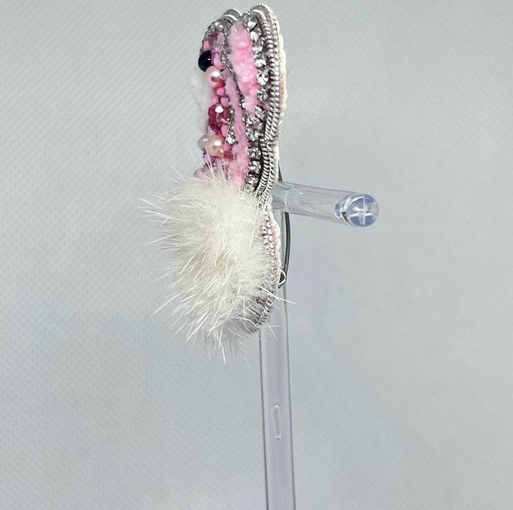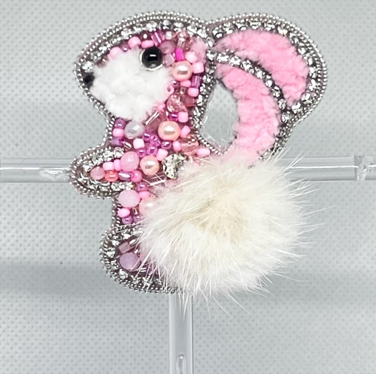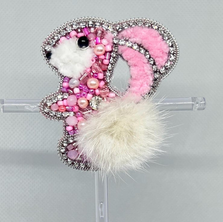 This adorable handmade bunny brooch is crafted with pink beads, crystals, and a fluffy faux fur tail, bringing a playful charm to any outfit. Perfect as a gift for animal lovers or a delightful Easter accessory, this brooch adds a whimsical touch to jackets, dresses, or scarves. Lightweight and versatile, it s easy to wear for casual or formal occasions. Keep this brooch looking its best by storing it in a soft cloth bag and avoiding exposure to water or harsh chemicals.