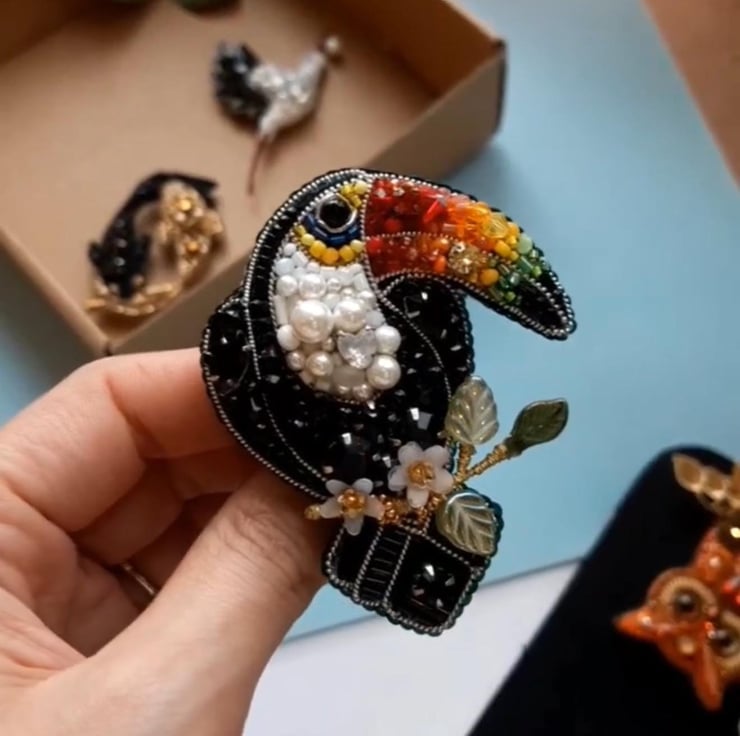 This handmade toucan brooch is a vibrant and unique accessory, intricately crafted with colorful beads, crystals, and pearls. Its tropical bird design brings nature-inspired charm to your outfit. Perfect as a gift for bird lovers, art enthusiasts, or anyone who appreciates exquisite craftsmanship. Wear it on dresses, coats, bags, or scarves for a standout look. A versatile brooch for casual outings, events, or celebrations.