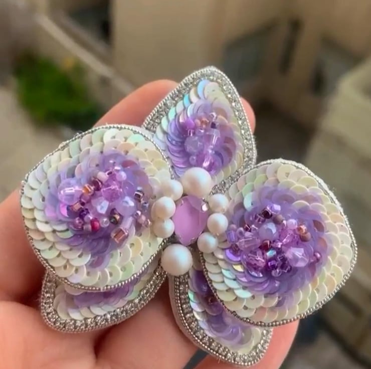 This handmade orchid flower brooch is a stunning accessory crafted with intricate sequins, beads, and pearls. Its elegant design and iridescent lilac tones make it the perfect statement piece for weddings, parties, or everyday elegance. Lightweight and versatile, this brooch is suitable for clothing, bags, or scarves. Thoughtfully handmade, it makes an ideal gift for flower lovers or anyone who appreciates unique handmade accessories. Its exquisite craftsmanship ensures you stand out with a touch of floral beauty.