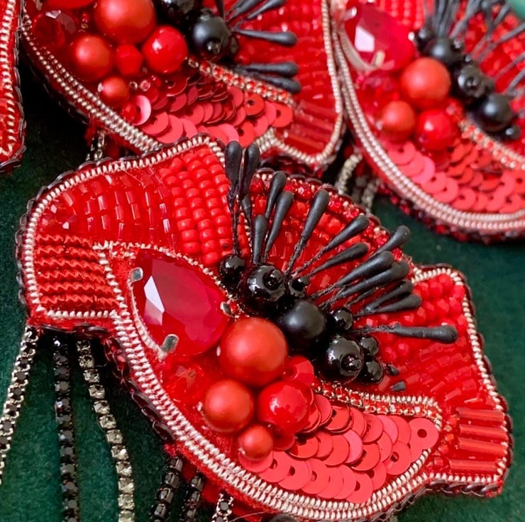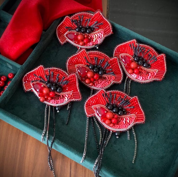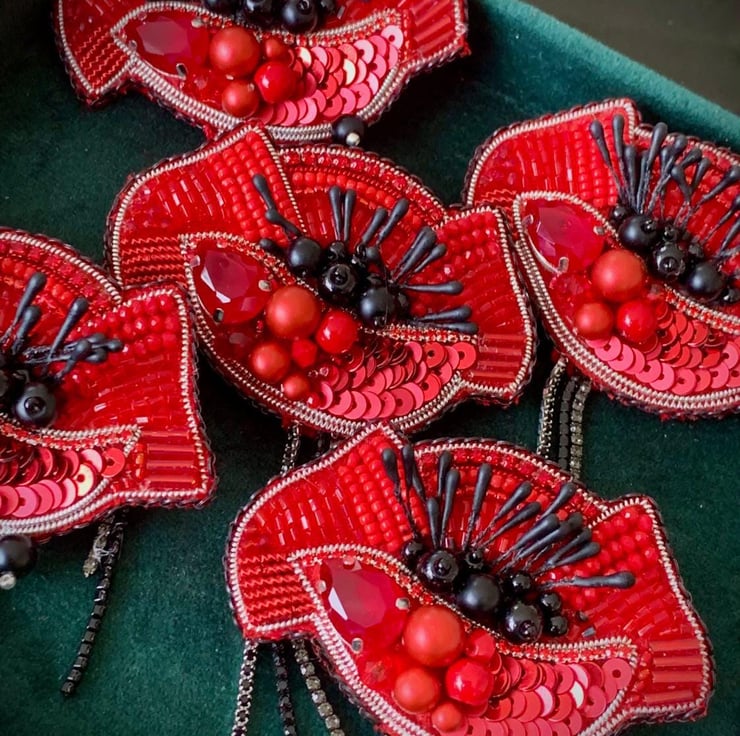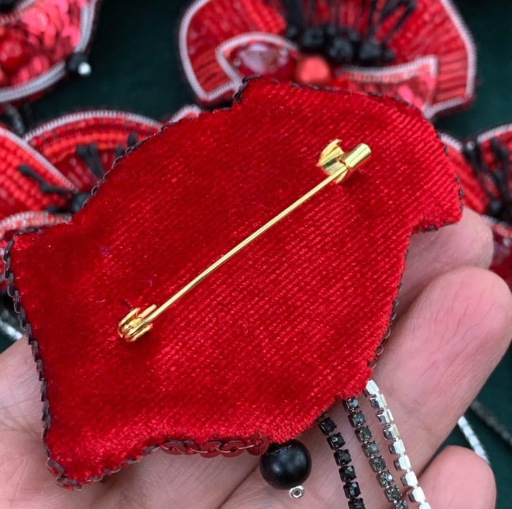 This stunning handmade poppy brooch is intricately designed with red beads, black crystals, and sequins. Perfect as a statement accessory, this brooch is ideal for Remembrance Day, memorial events, or simply adding elegance to your outfit. The vibrant red and black tones, paired with delicate chain tassels, create a unique and symbolic piece. A thoughtful gift for loved ones or a cherished addition to your own jewelry collection.