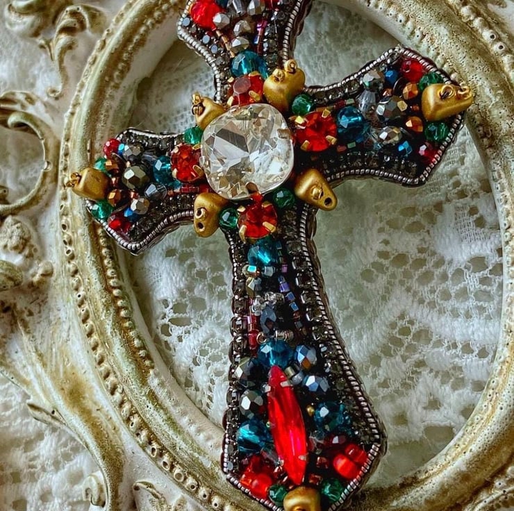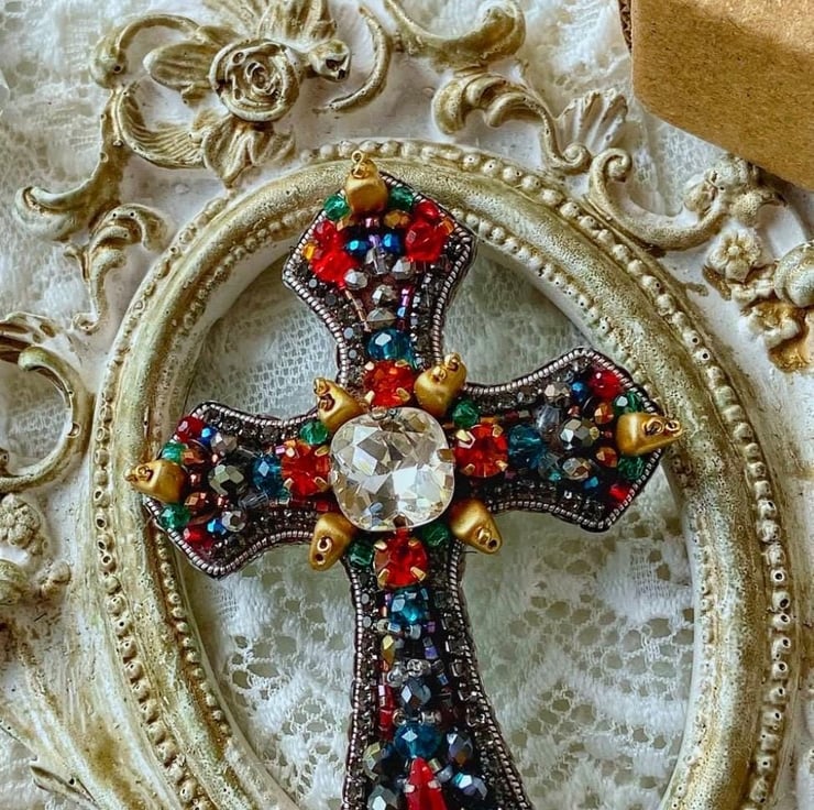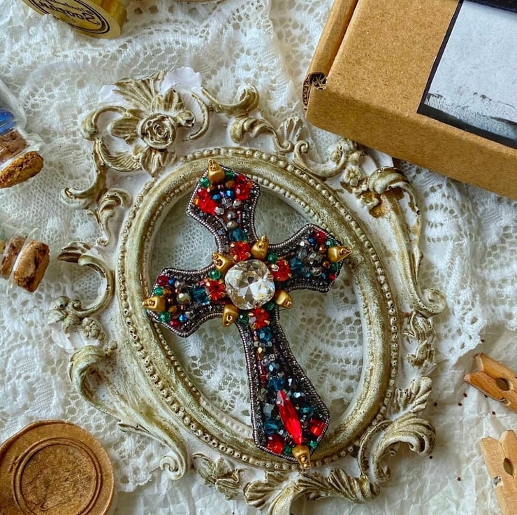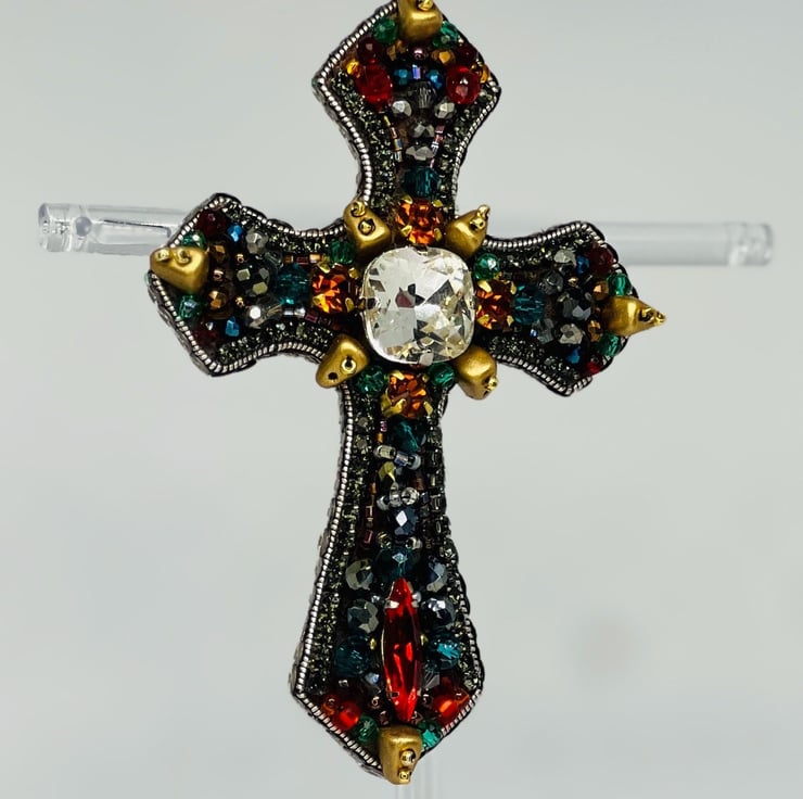 This handmade beaded cross brooch features vibrant crystals, intricate beadwork, and golden accents, making it a unique statement piece. Perfect for religious ceremonies, gifting, or adding a spiritual touch to your attire. Its high-quality craftsmanship and durable materials ensure long-lasting beauty. Whether worn on a coat, scarf, or bag, this brooch is a meaningful accessory for believers and admirers of unique religious jewelry. Ideal as a thoughtful gift for Easter, Christmas, or other occasions.