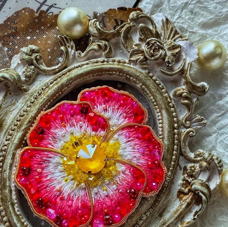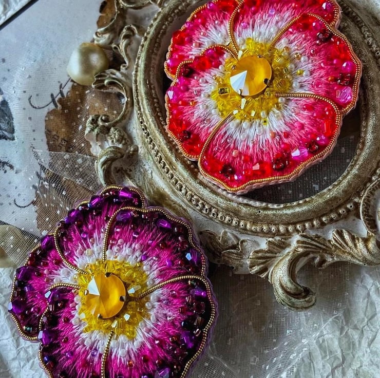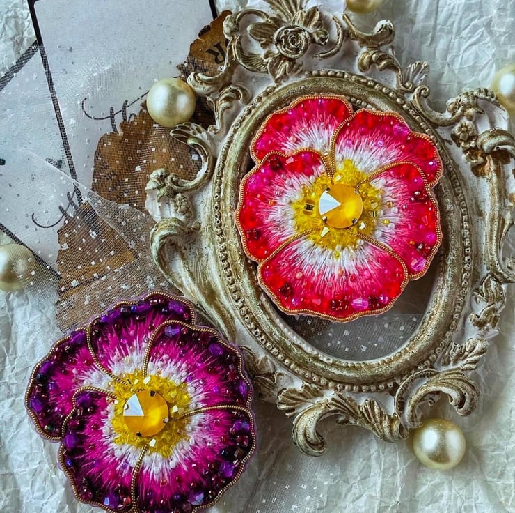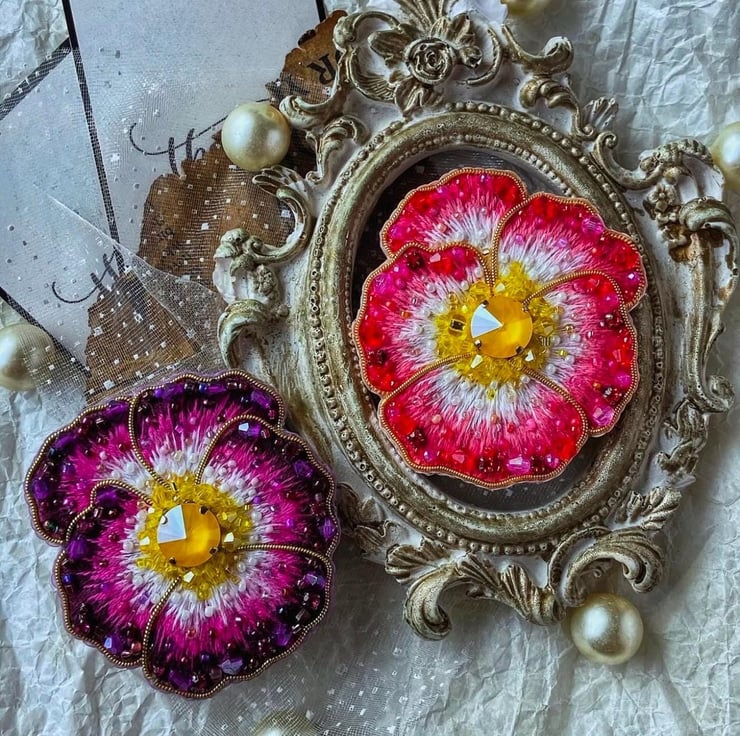 Adorn your outfit with this handmade beaded pansy flower brooch. Made with intricate beadwork, crystals, and fine materials, this floral brooch is perfect for weddings, parties, or everyday wear. The vibrant colours and unique design make it an ideal gift for women who love artistic jewelry. Lightweight and durable, it can be pinned to dresses, scarves, coats, or bags for a stylish touch. Thoughtfully handcrafted, this brooch is a timeless addition to your collection.