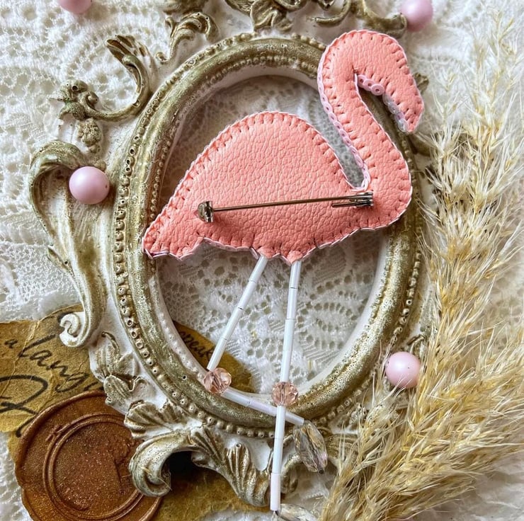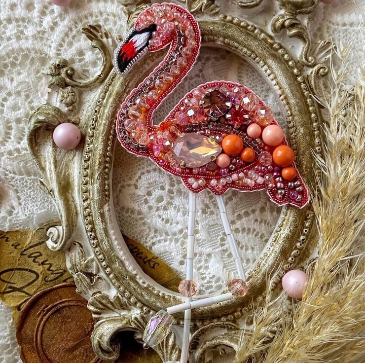 This handmade flamingo brooch is a statement piece, crafted with meticulous care using high-quality beads, crystals, and fabric. Its vibrant pink hues, intricate detailing, and shimmering crystals make it a perfect accessory for any occasion, adding elegance and charm to your outfit. Whether worn on a lapel, dress, or bag, this brooch is a timeless and eye-catching addition to your jewelry collection. Ideal as a gift for flamingo lovers, animal enthusiasts, or anyone who appreciates unique, handmade treasures.