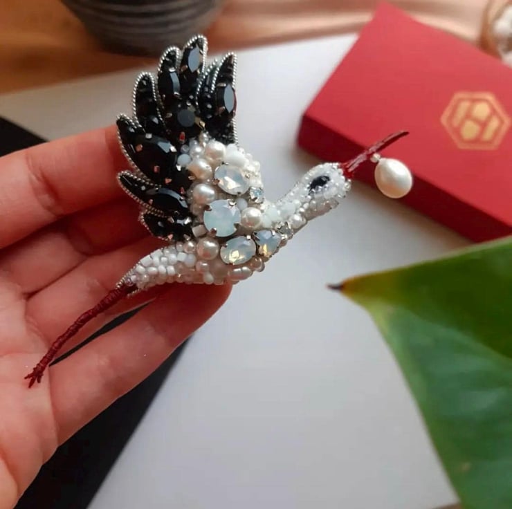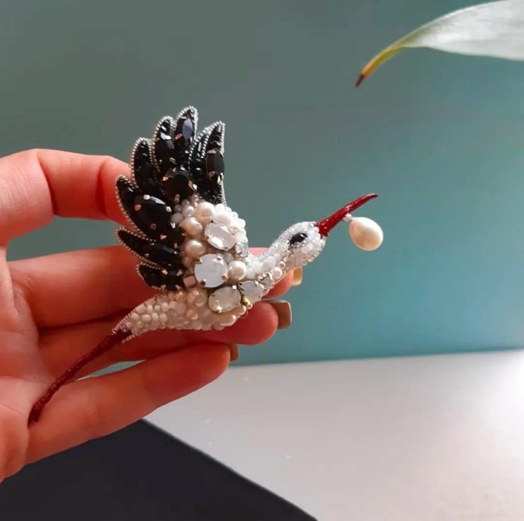 This stunning handmade stork brooch is a perfect accessory for baby showers, christenings, and as a thoughtful gift for new or expecting moms. Intricately crafted with premium beads, crystals, and a pearl accent, this brooch combines elegance and symbolism. Its versatile design complements dresses, jackets, or scarves, adding a unique charm to any outfit. Whether celebrating motherhood or looking for a meaningful present, this brooch will make any moment special.