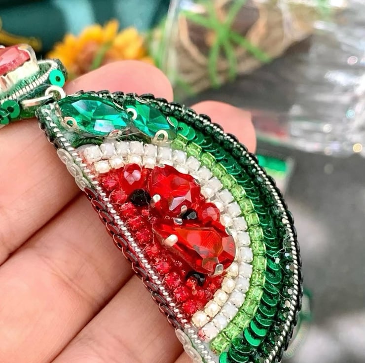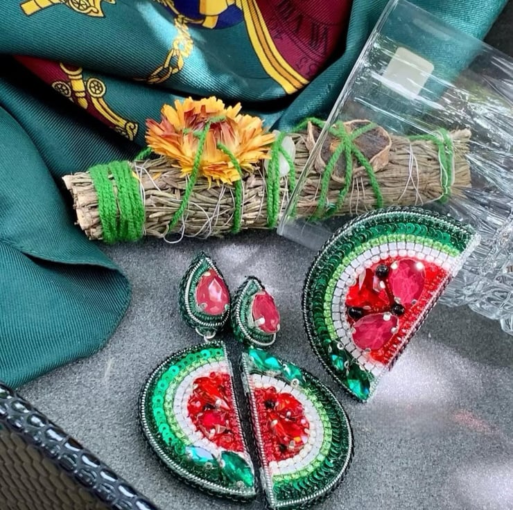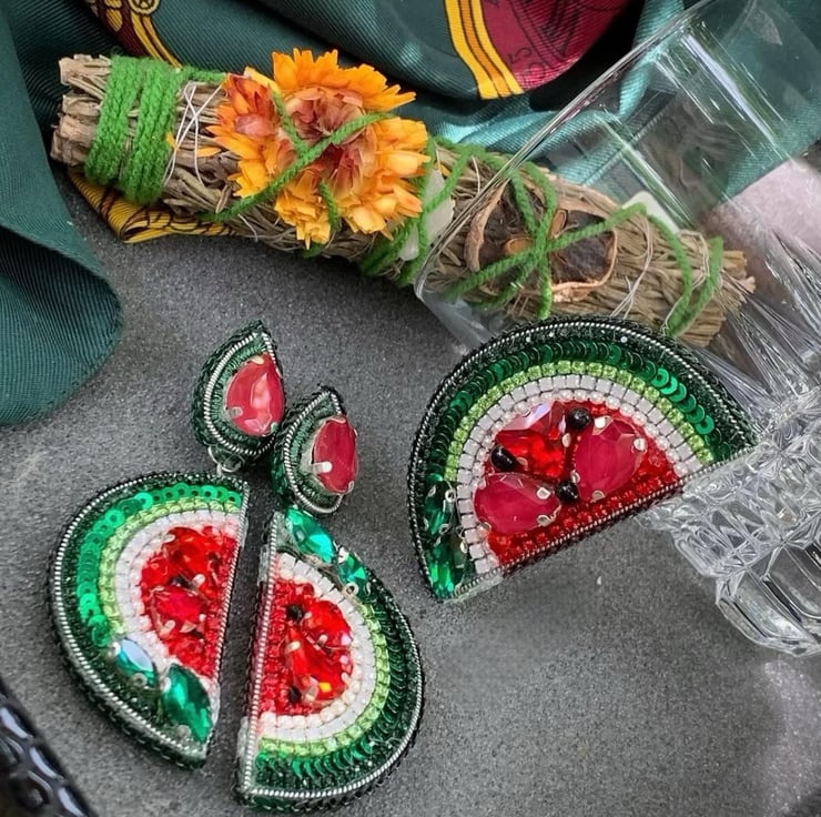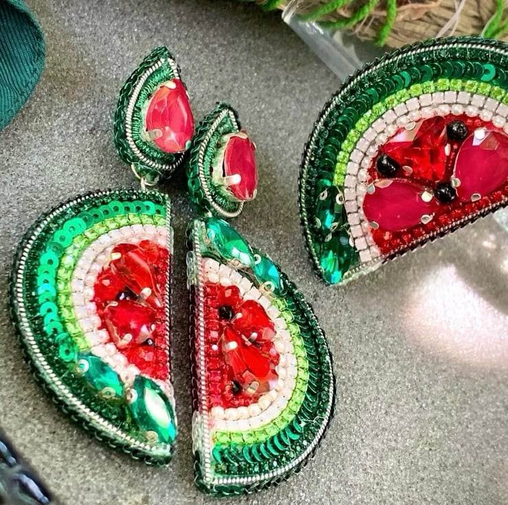 Add a vibrant touch to your summer style with these handmade watermelon slice earrings. Featuring intricate beadwork, sparkling crystals, and a playful design, these earrings are lightweight, durable, and perfect for casual or festive occasions. A unique gift for women who love bold, statement jewelry.