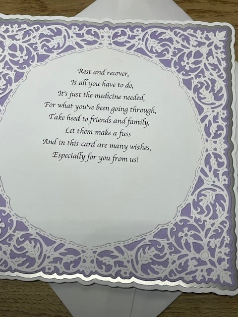 Express your gratitude with this elegant handmade Get Well Soon, perfect for sending to Someone Special. Let them know you're thinking of them with this heartfelt gesture. Handcrafted with love to brighten their day.