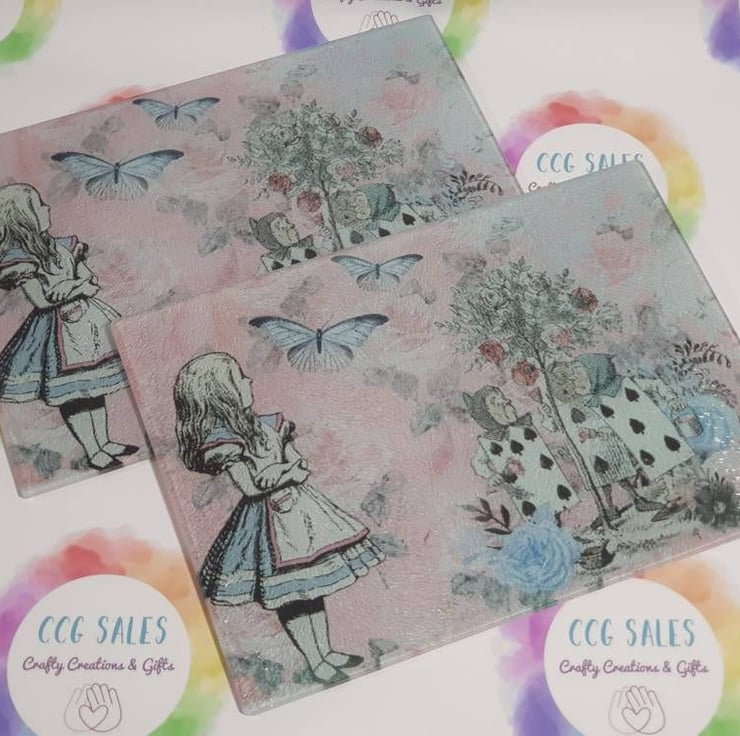 These glass chopping boards measure are available in 2 sizes, A4 or A3 and have a plain finish with rubber feet to protect work surfaces.
