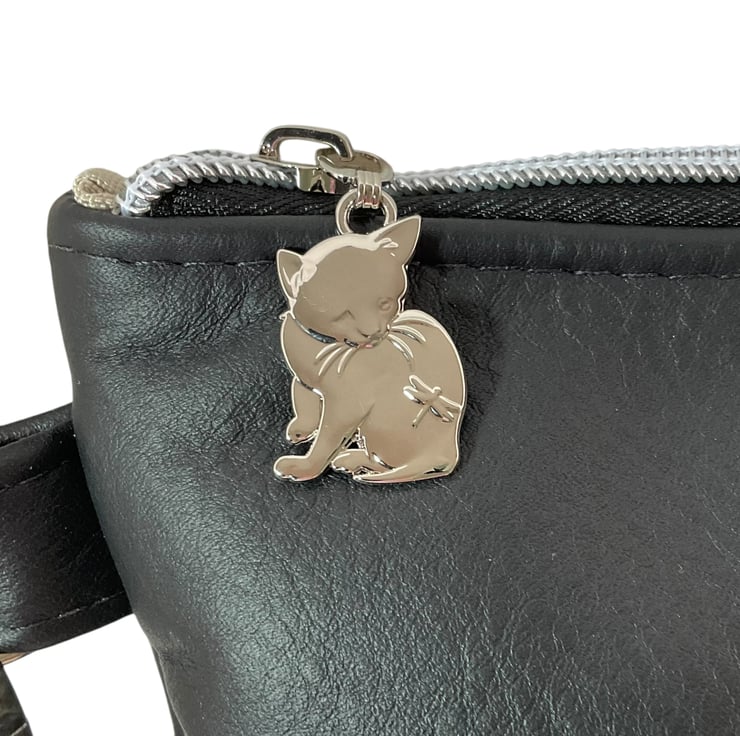 The bag closes with a zip that is slightly longer to enable you to open it fully. This has a smart metal zip end. Both external zips feature cat zip pulls.