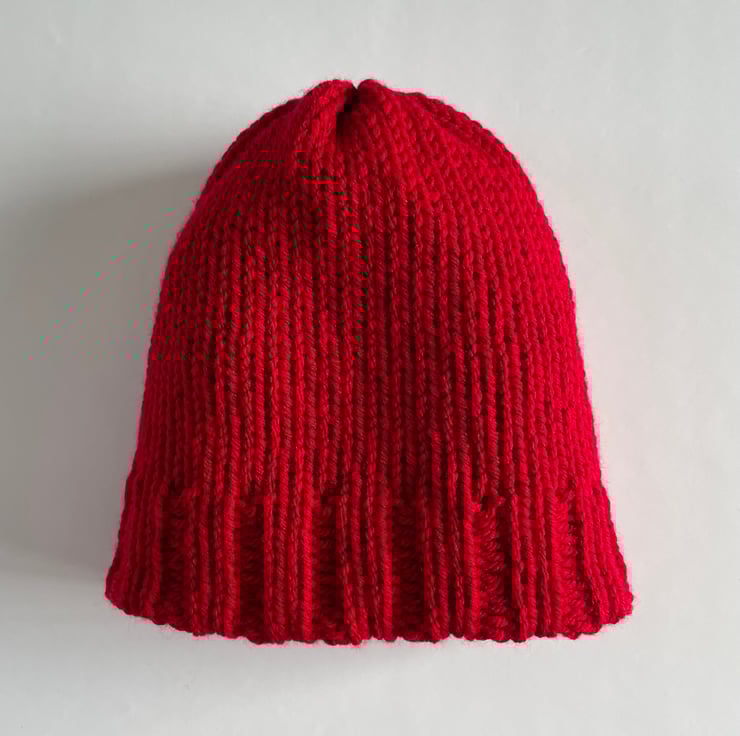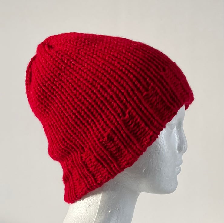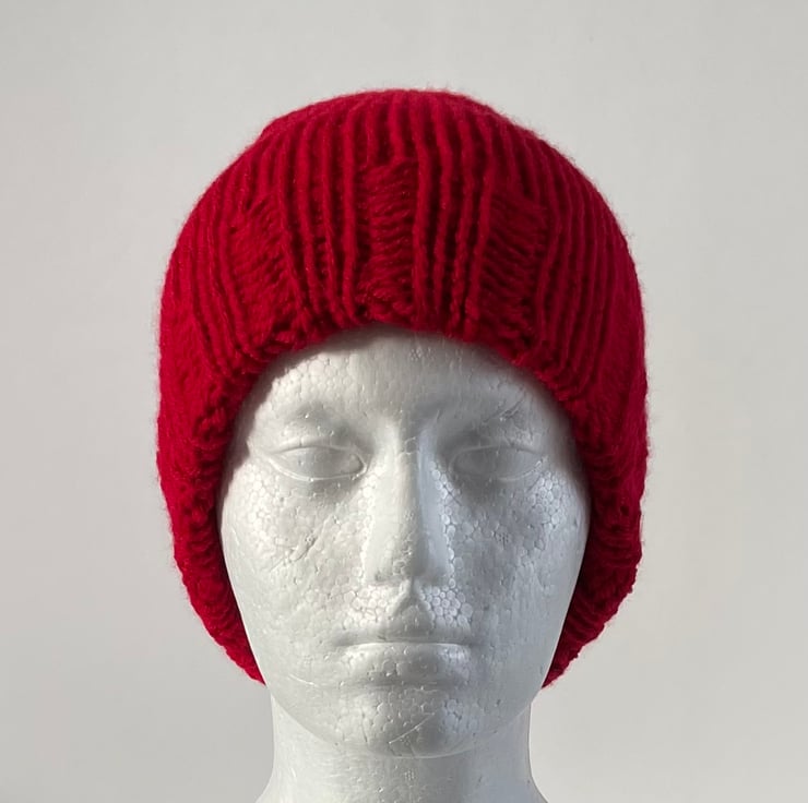 This Beanie is made from chunky acrylic yarn and is double layered with a ribbed brim.