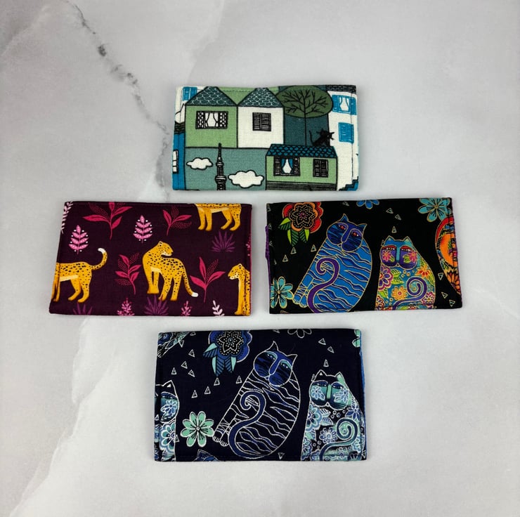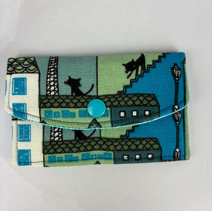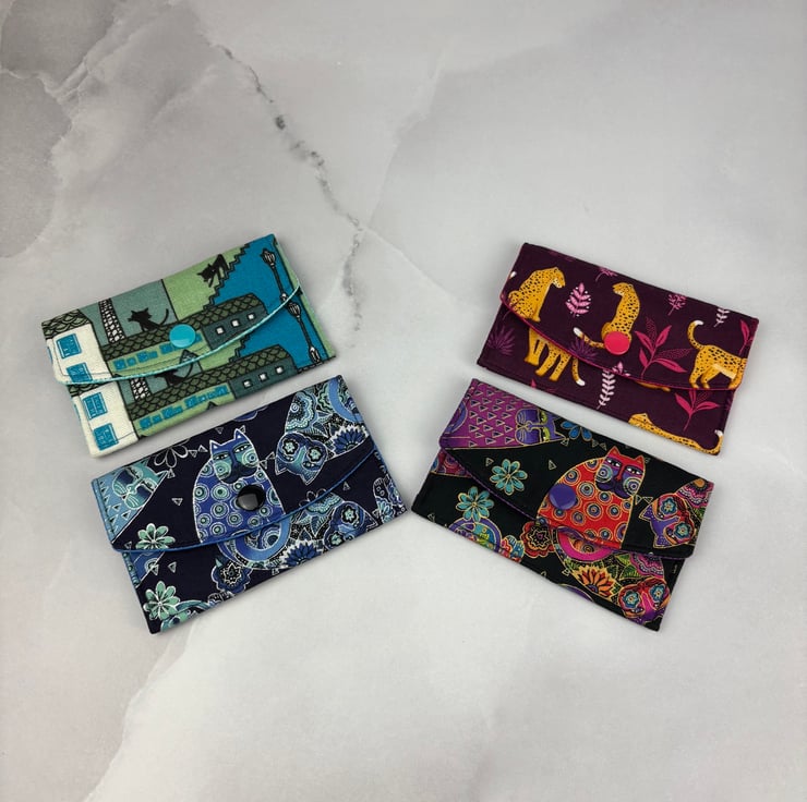 Each of my unique card cases is individually made by me in my relaxing and tranquil little West Sussex garden studio so the pattern placement and popper may vary slightly.