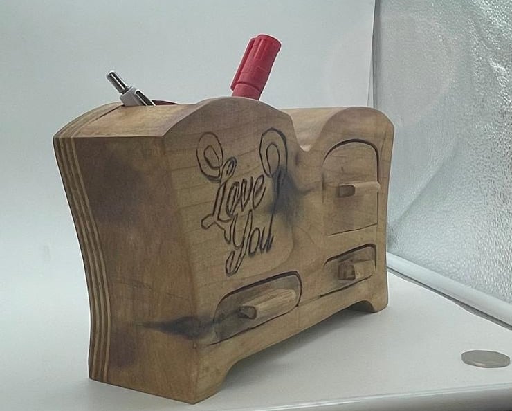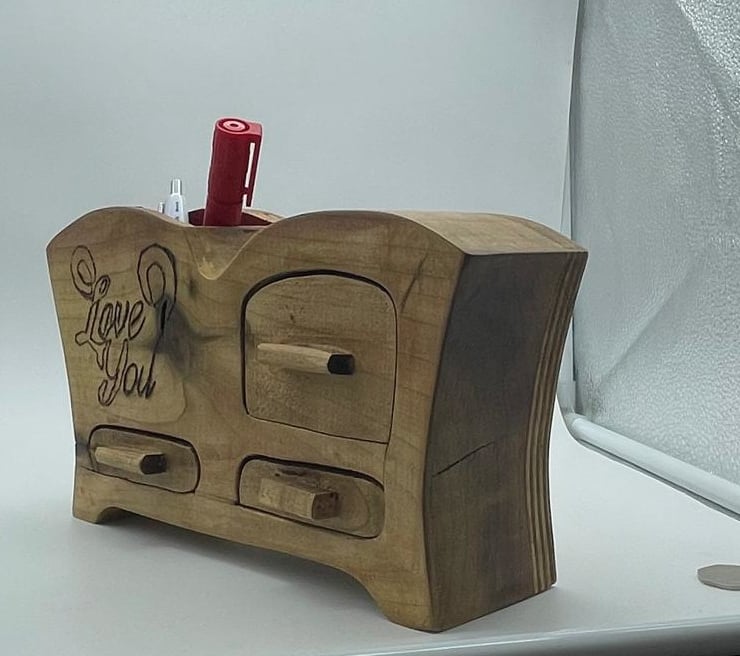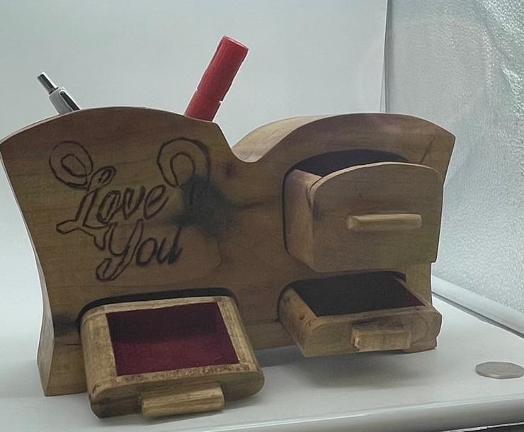 Handcrafted Wooden Pen Holder - Multi-Purpose Bandsaw Box for Desk