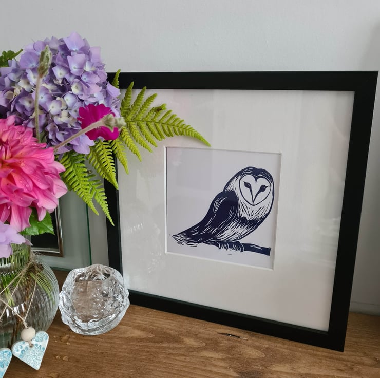 This is an original handprinted birthday card of an owl using a linocut designed and carved myself. I take inspiration from nature and enjoy printing and painting animals and flowers etc.
