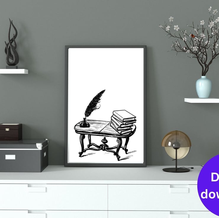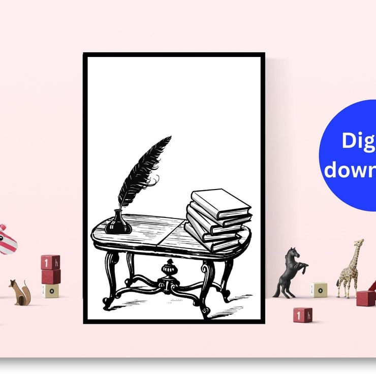 This art print beautifully captures the essence of writing and reading. One depiction of a stack of books evokes warm memories of leisurely afternoons filled with exploration and learning. The other, featuring a quill in an inkpot, symbolizes creativity and the potential for storytelling. The minimalist line art style adds an elegant touch, perfect for a home library, study, or a cozy reading corner. Displaying these prints allows you to honor the written word and the timeless stories that unite us all.