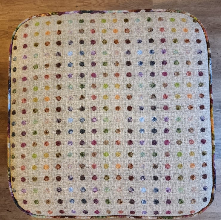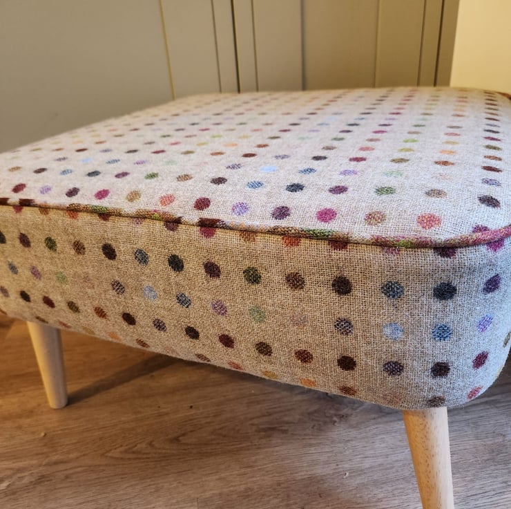 A beautiful handmade Large Footstool, Upholstered Large Footstool, in Abraham Moon Multispot fabric with Fire Retardancy SCH3 Interliner material.