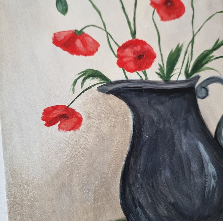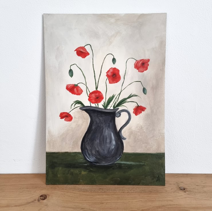 Red Poppy Flowers Original Acrylic Painting - Unframed