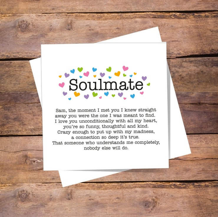 Soulmate Anniversary Personalised Card - valentines, birthday, love you
