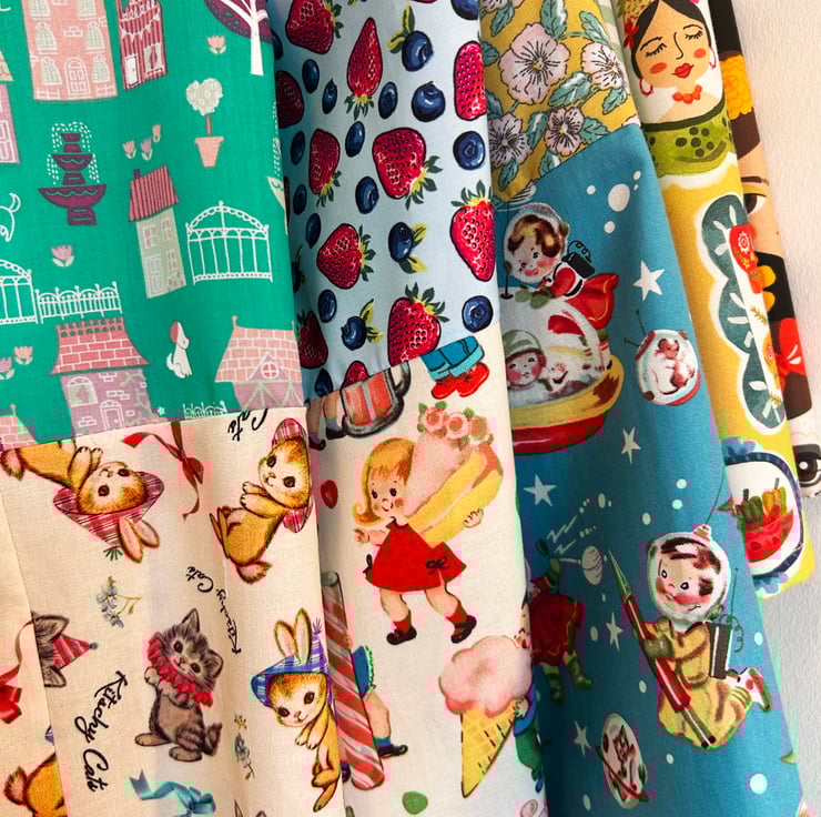 I love to create kitsch prints and fabrics from my little house on the Isle of Wight