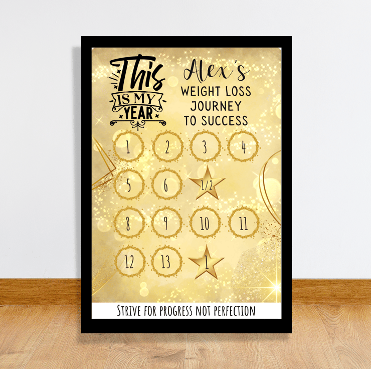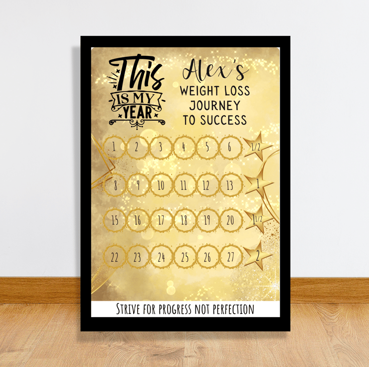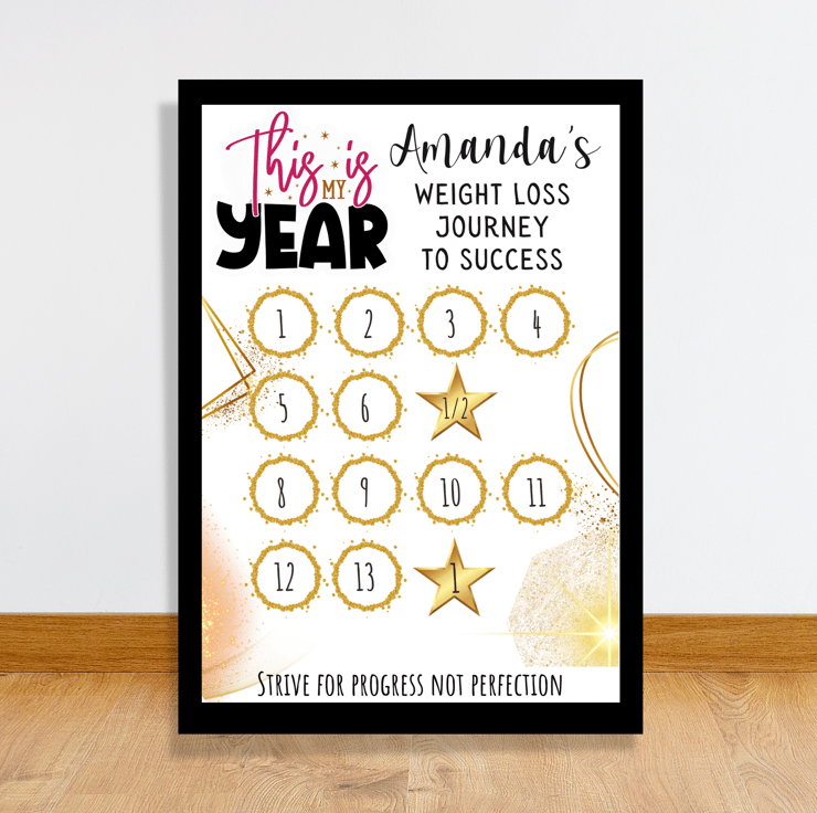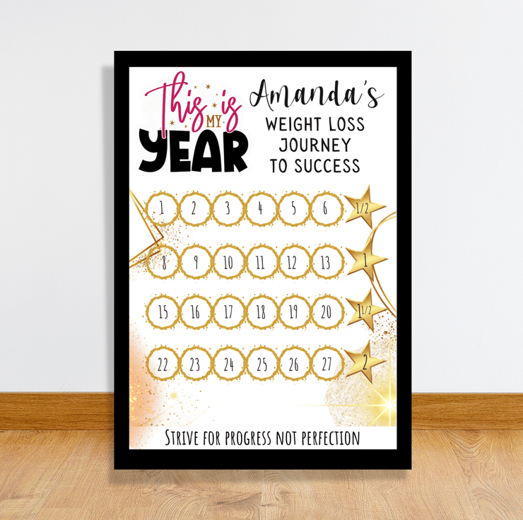 Get inspired for the near year in 2025 with a personalised weight loss chart. Track your progress, set goals, and stay motivated throughout the season. Personalised & printed on high quality card and posted to your door!