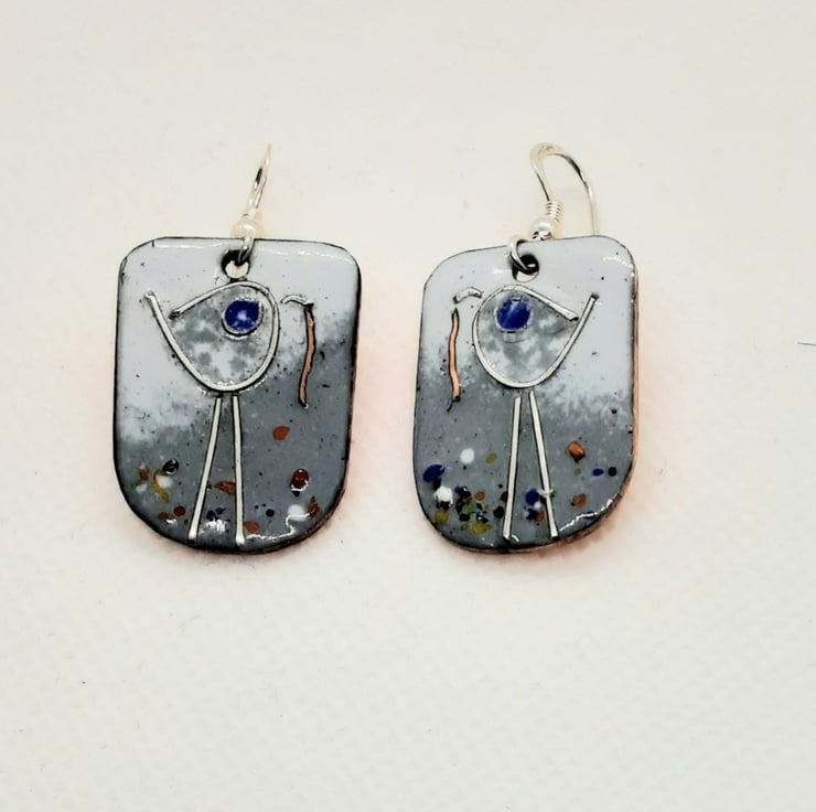 These delightful earrings measures approx. 20mm x 25mm . They are made from copper, enamelled and sterling silver wirework to depict the long legged bird. The worm is in copper and multi-coloured crystals have been added to bring everything to life!! The ear hooks are in sterling silver. There is also a matching necklace if desired!