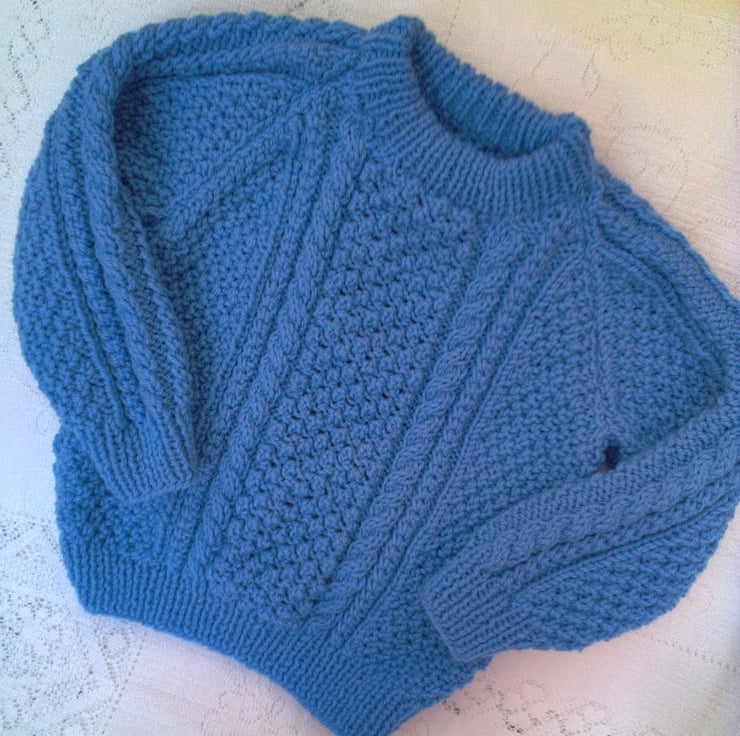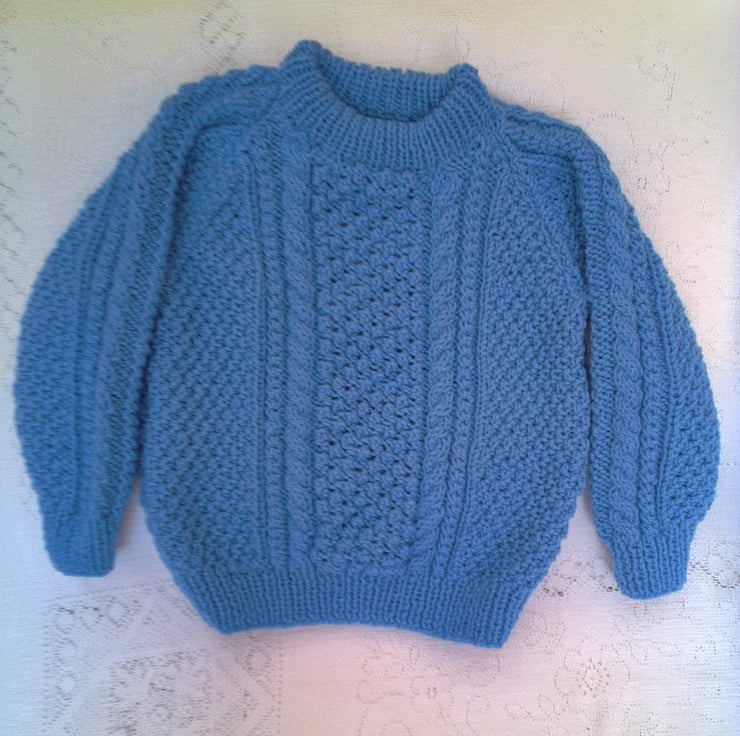 Cable Patterned Child's Jumper with Round Neck, Hand Knitted Children's Jumper, Child's Cabled Jumper, Winter Jumper, Winter Sweater, Children's Clothes, Birthday Gift