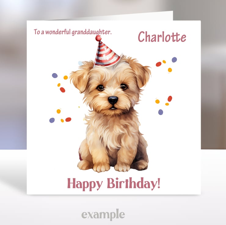 You can choose to add a name and your relationship to the recipient, and the age. Otherwise the card will simply say 'Happy Birthday on the front in either pink or blue.