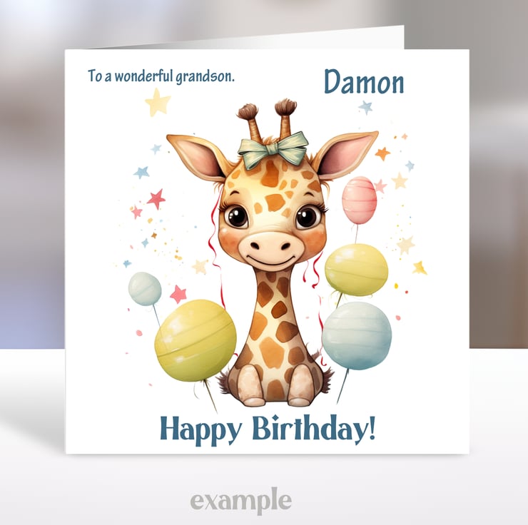 You can choose to add a name and your relationship to the recipient, and the age. Otherwise the card will simply say 'Happy Birthday on the front in either pink or blue.