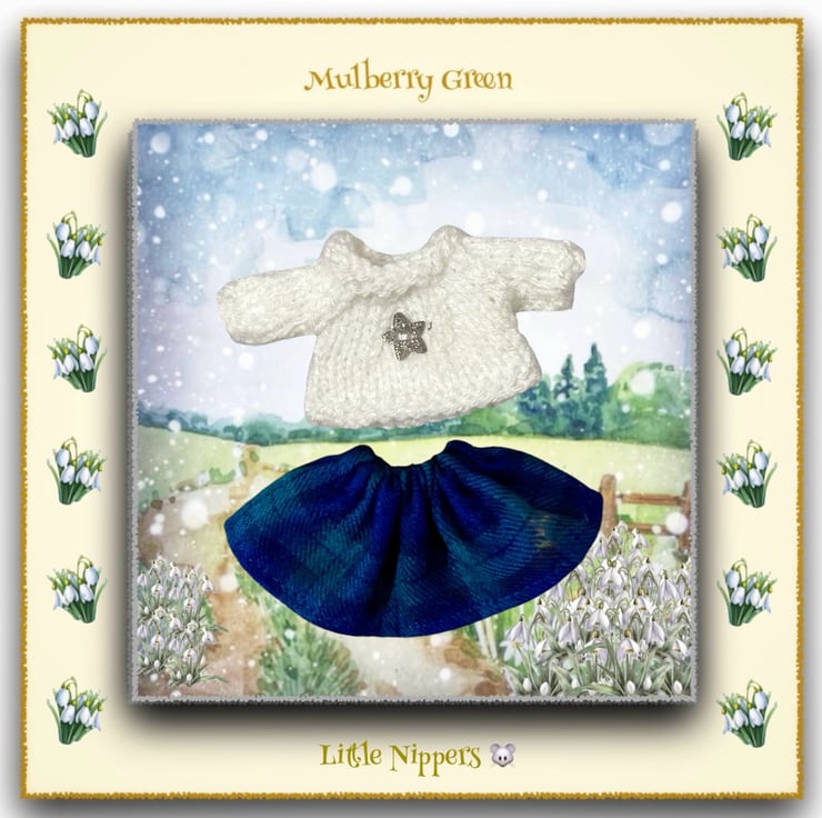 A little Black Watch tartan skirt and a white jumper with a silver star decoration, made specially to fit the Little Nippers.