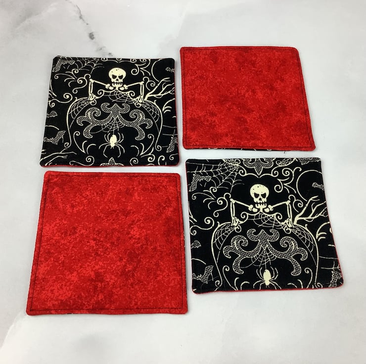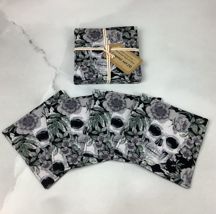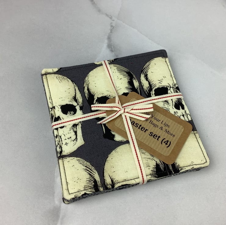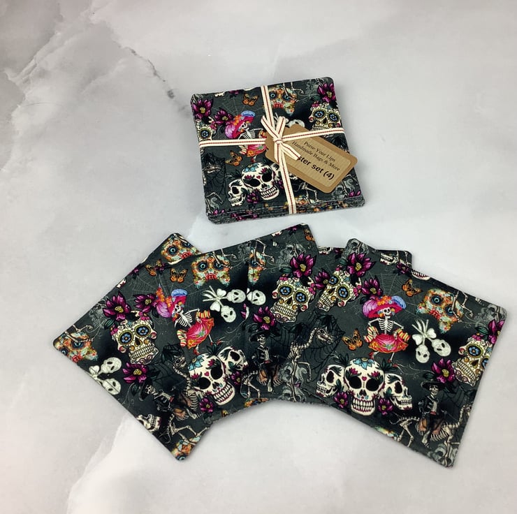 Skulls coasters, Set of 4 gothic fabric coasters, 6 options, Handmade