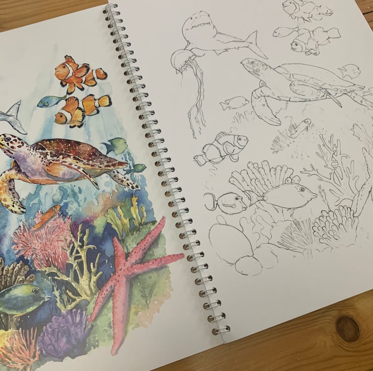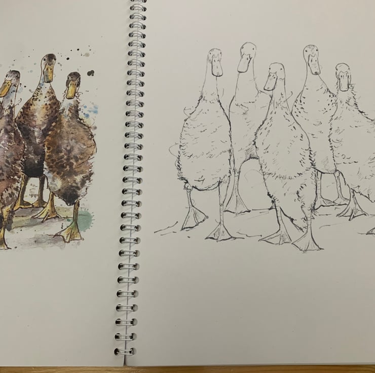 A collection of 11 animal artworks with pencil sketch outline and painting to guide you. Printed on recycled paper which can hold a light wash of watercolour, pencils or felttips.