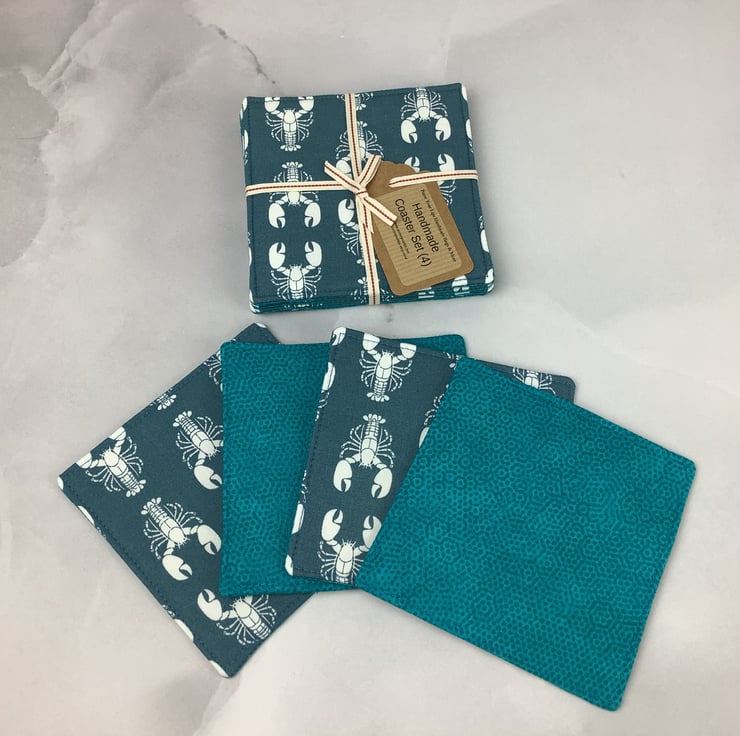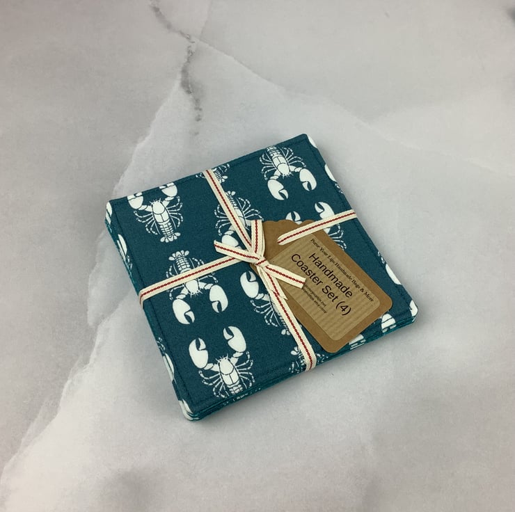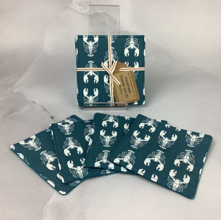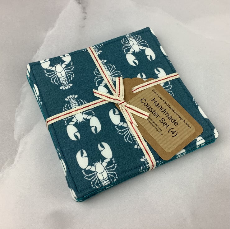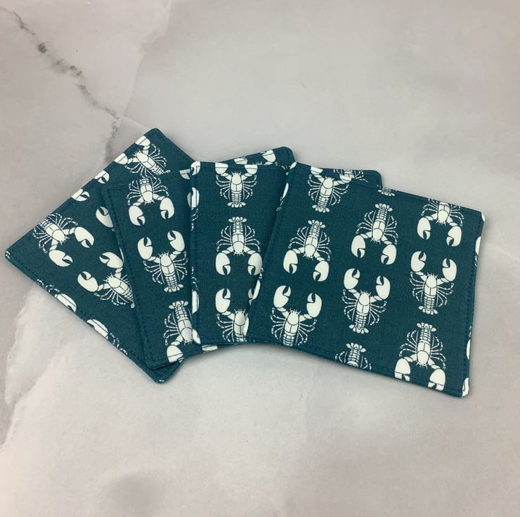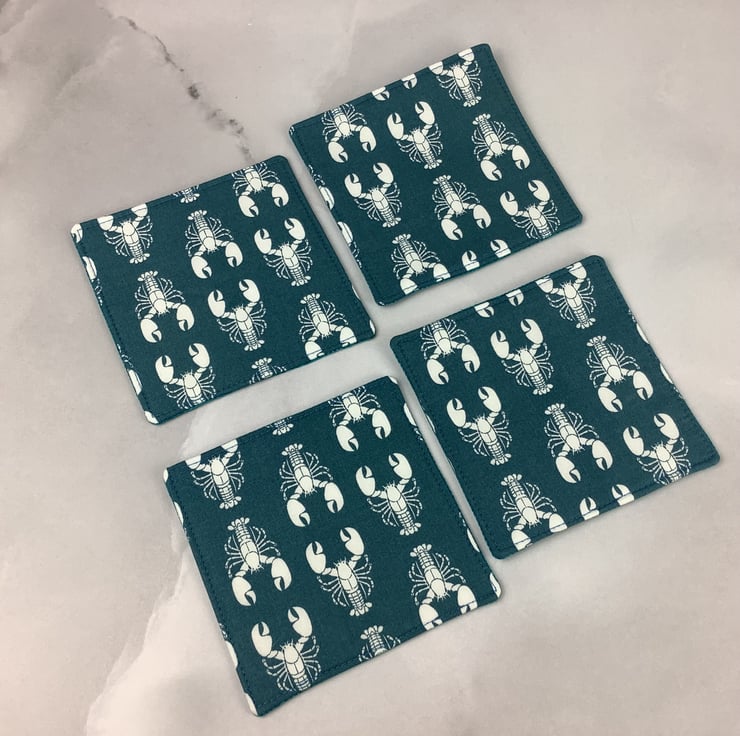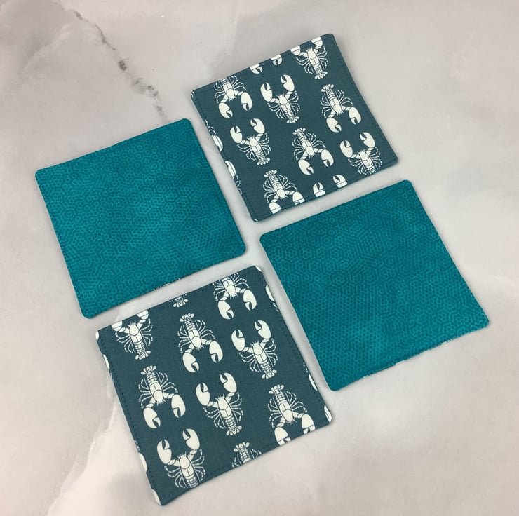 Lobsters coasters, Set of 4 fabric coasters, Handmade