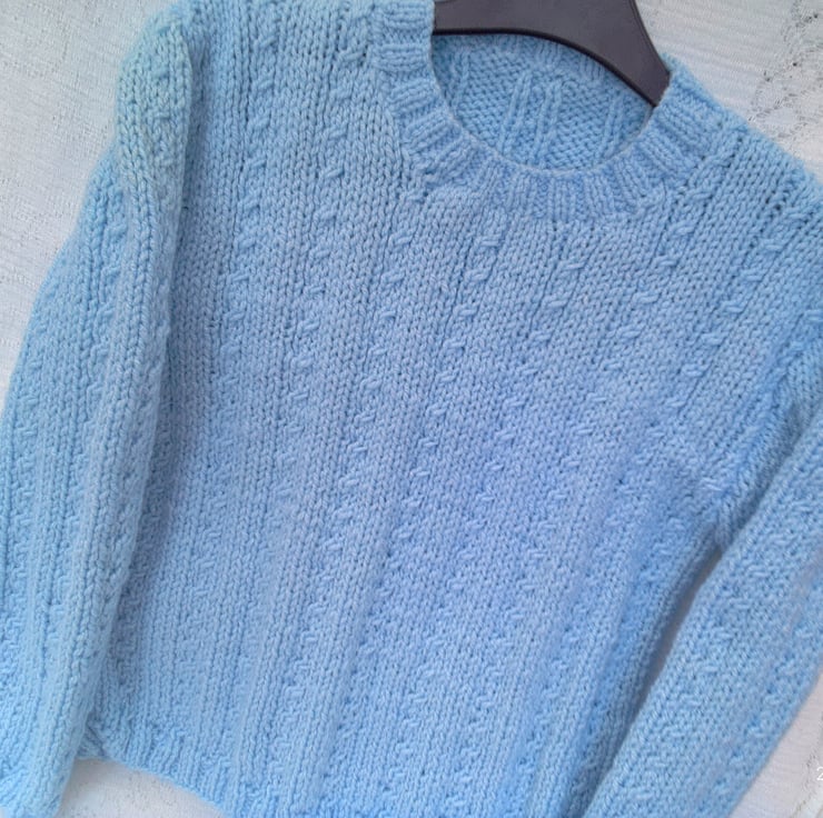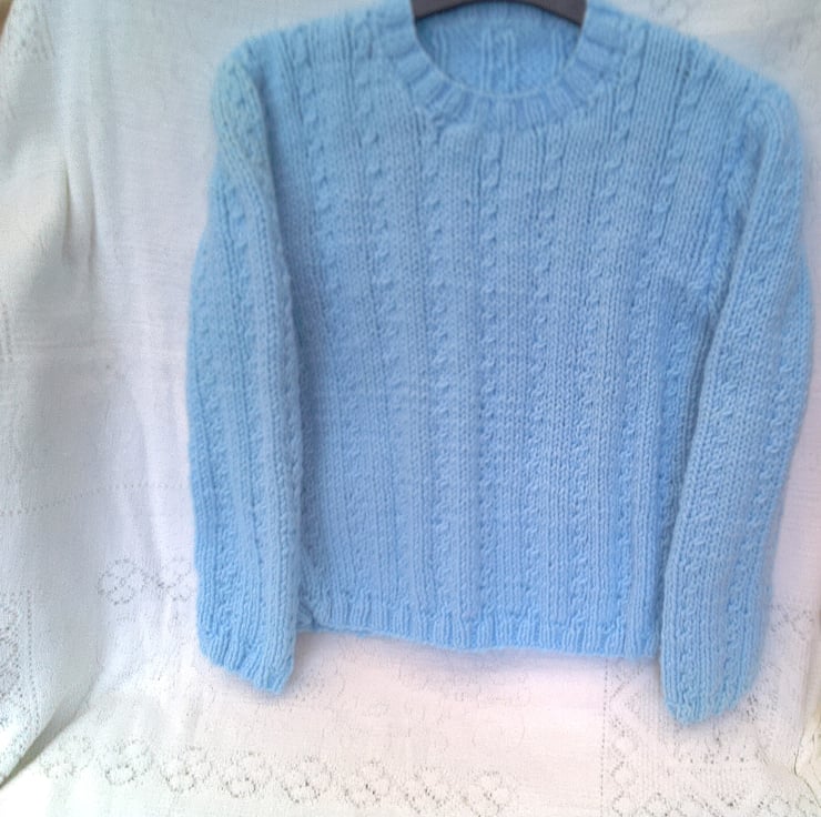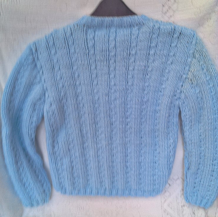 This stylish cabled aran jumper for a boy or girl is hand knitted using aran weight yarn and is in a stylish cable pattern. It would also make an ideal gift for a child for a birthday or Christmas or be a lovely treat for your own little one. It can be custom made for you in a size and colour of your choice, the available sizes and prices are shown below and please state the colour required when you order. The processing time for this jumper will be between 1 and 2 weeks to produce and post to you.