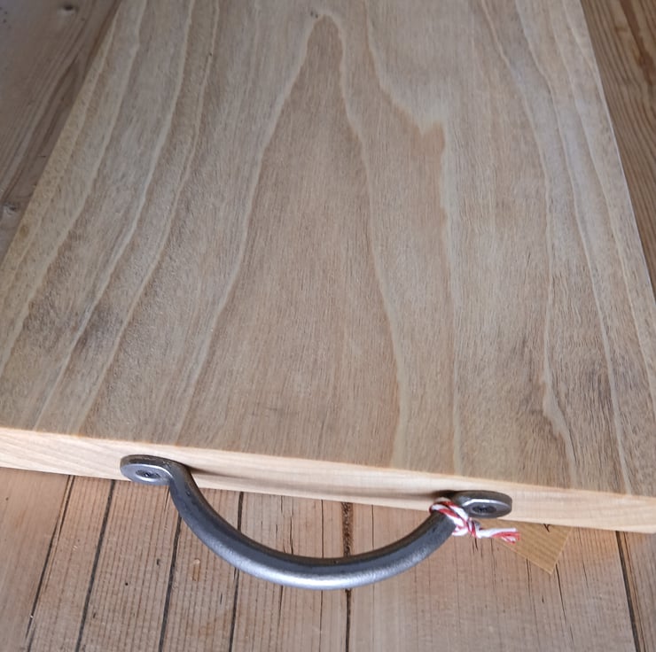 This board has been finished with a food and nut safe mineral oil. It should be washed after use under running water and hung to dry from one of the handles.