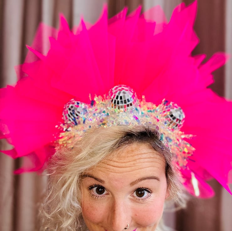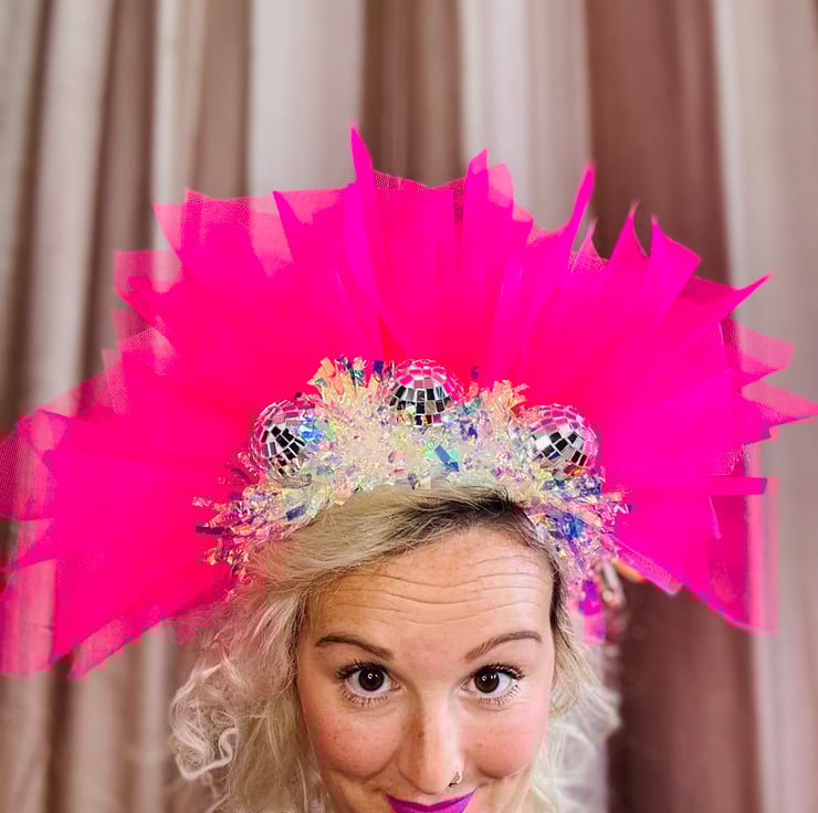 Similar to our bestselling Disco Time! headband, the Elton (named as it was on TV at the front of the Pyramid stage at Glastonbury when Elton John was playing!) has gorgeous bright net to make it a real show stopper.