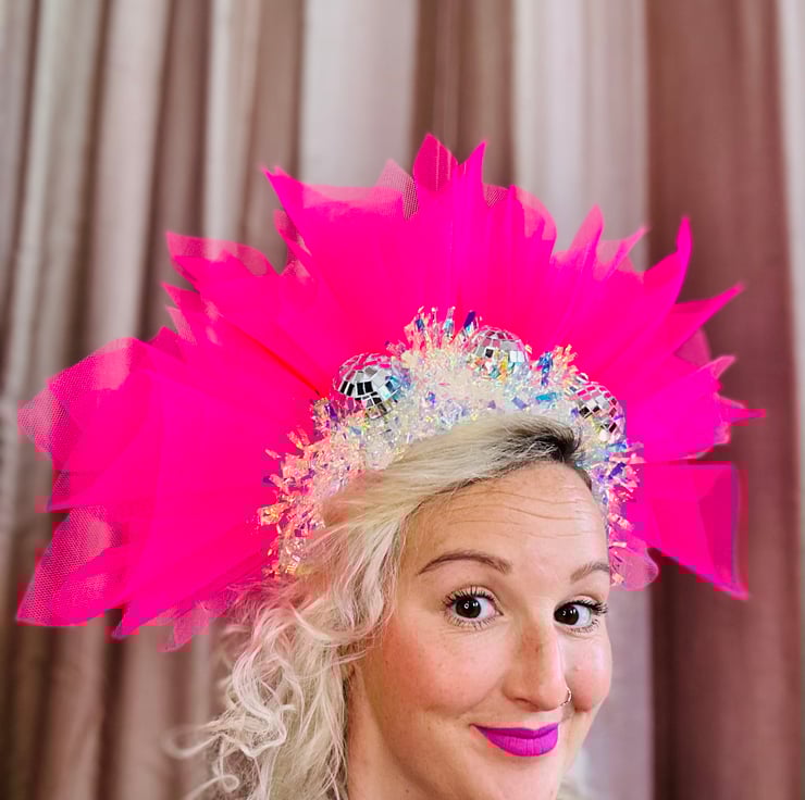 This headband is a total beauty, made with the brightest pink net (which is also UV!), you will be the Belle of the ball!