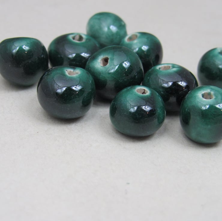 A mixture of handrolled ceramic beads, coloured with a soft emerald green glaze
