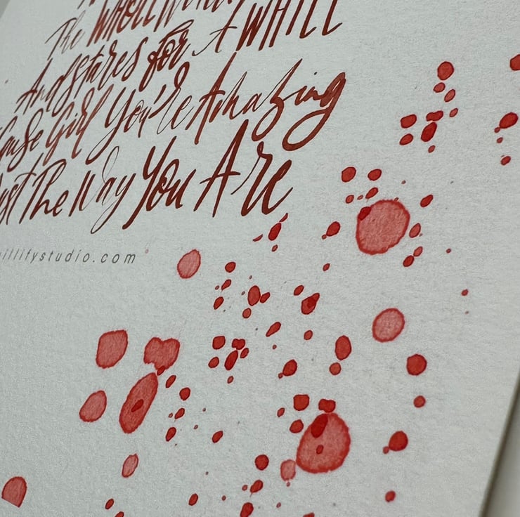 A4 Size - Special edition hand lettered song lyric giclée print, printed on luxurious fine art archival matt textured paper here in the UK to Museum quality standards. Printed specifically to order. Please allow 3 working days for printing, quality control and dispatch.