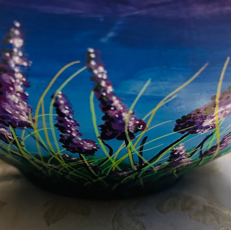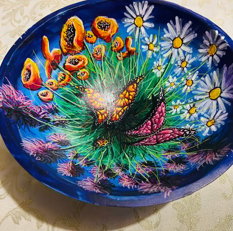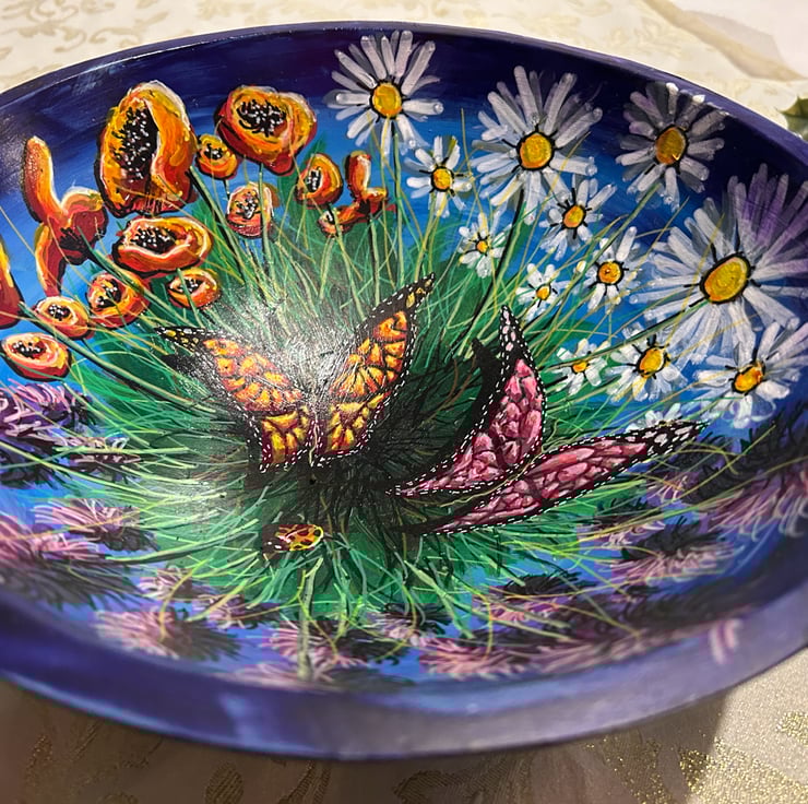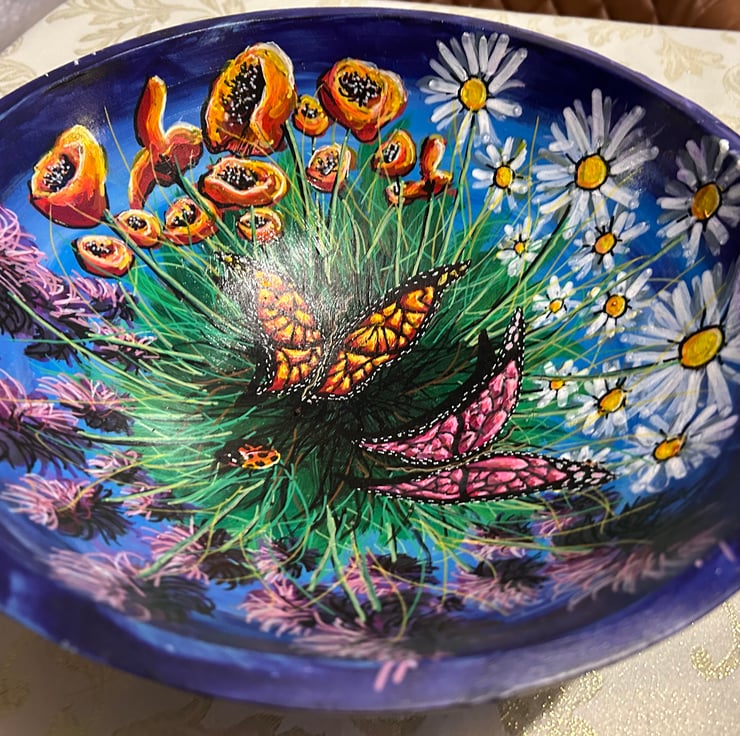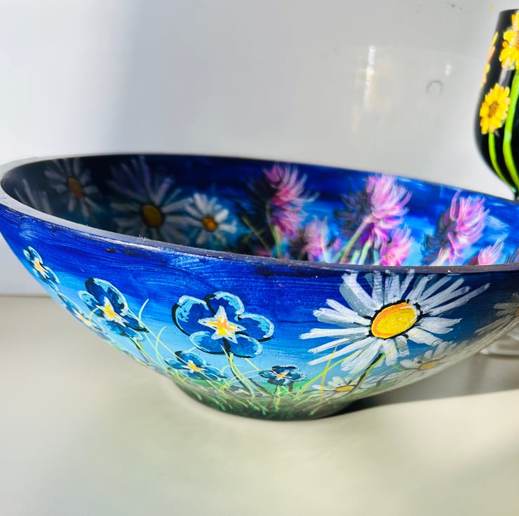 A hand painted and sealed Wooden bowl by Andrew Jenkins