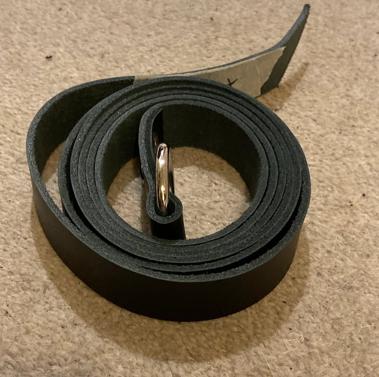 Leather weight is a firm 3-4 oz. Ring is 1.5” width and nickel plated. These belts are long enough to wrap around once, in some cases twice (depending on the build of the person using said belt).