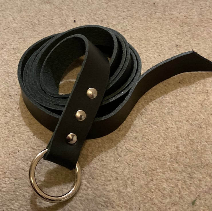 5 foot in length - 1" Ring Belt - Medieval Style in Black Leather - FREE SHIP