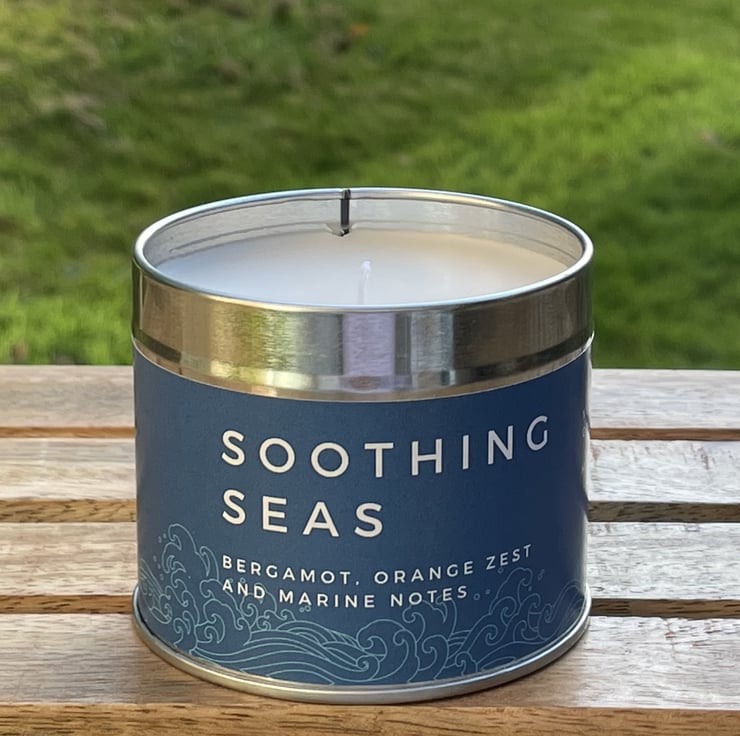 A handmade candle with the soothing scent of the ocean with marine and ozone notes, mixed with slight floral overtones and bergamot and orange zest.