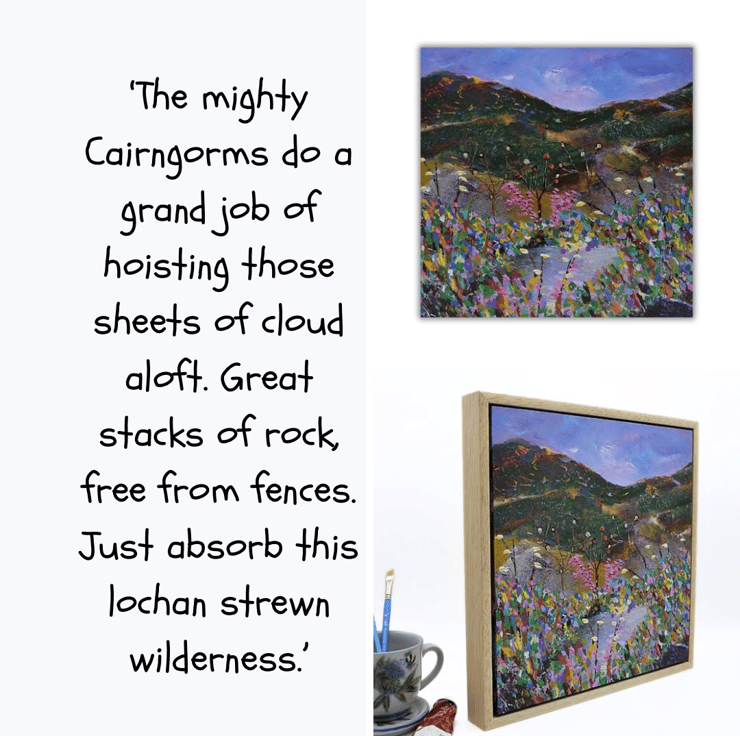 Have your very own piece of the Cairngorms National Park in your home, forever. This painting has incorporated the changing light, textures and patterns found within this unforgettable landscape.