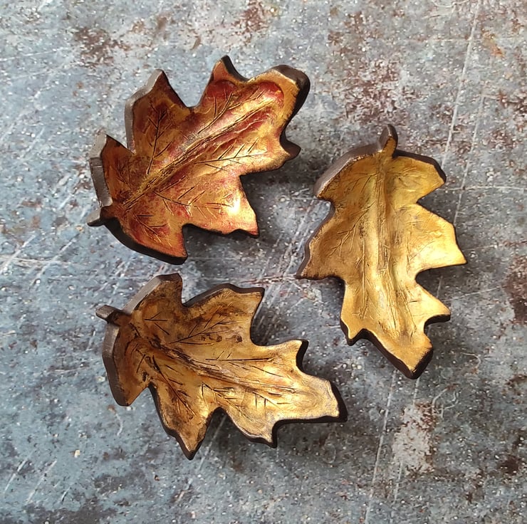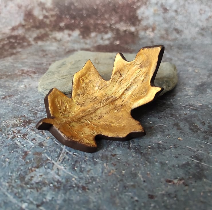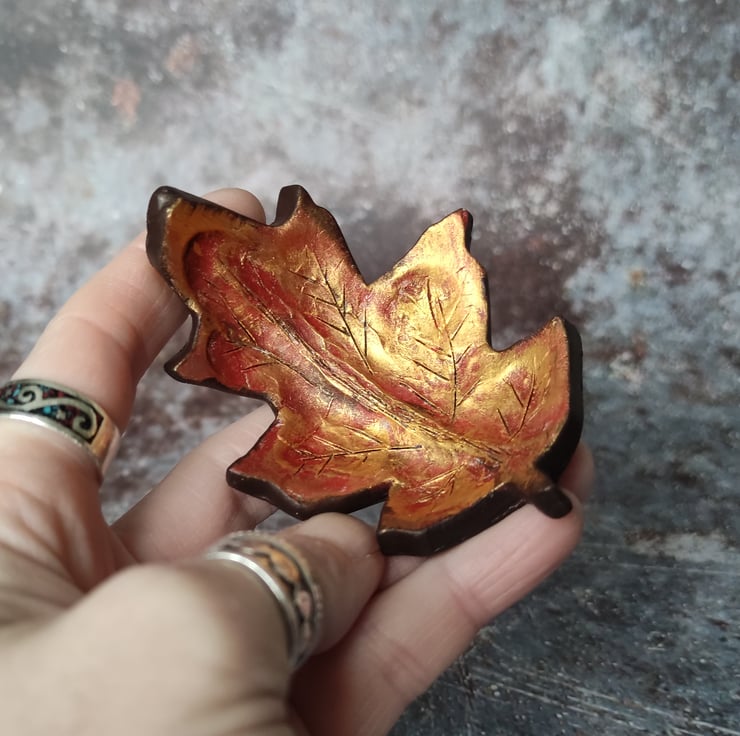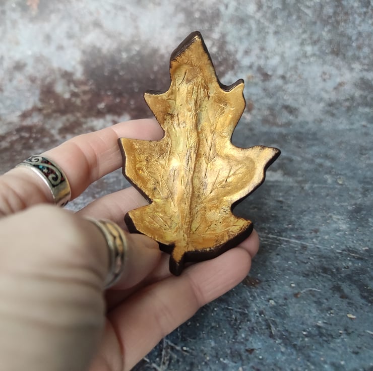 Handmade from air dried clay and hand painted in acrylics and metallics. Details include carved leaf lines and a lovely textured underside. My little curved fallen leaf trinket dishes are perfect for storing your favourite piece of jewellery, or as a decorative piece for nature inspired home décor.